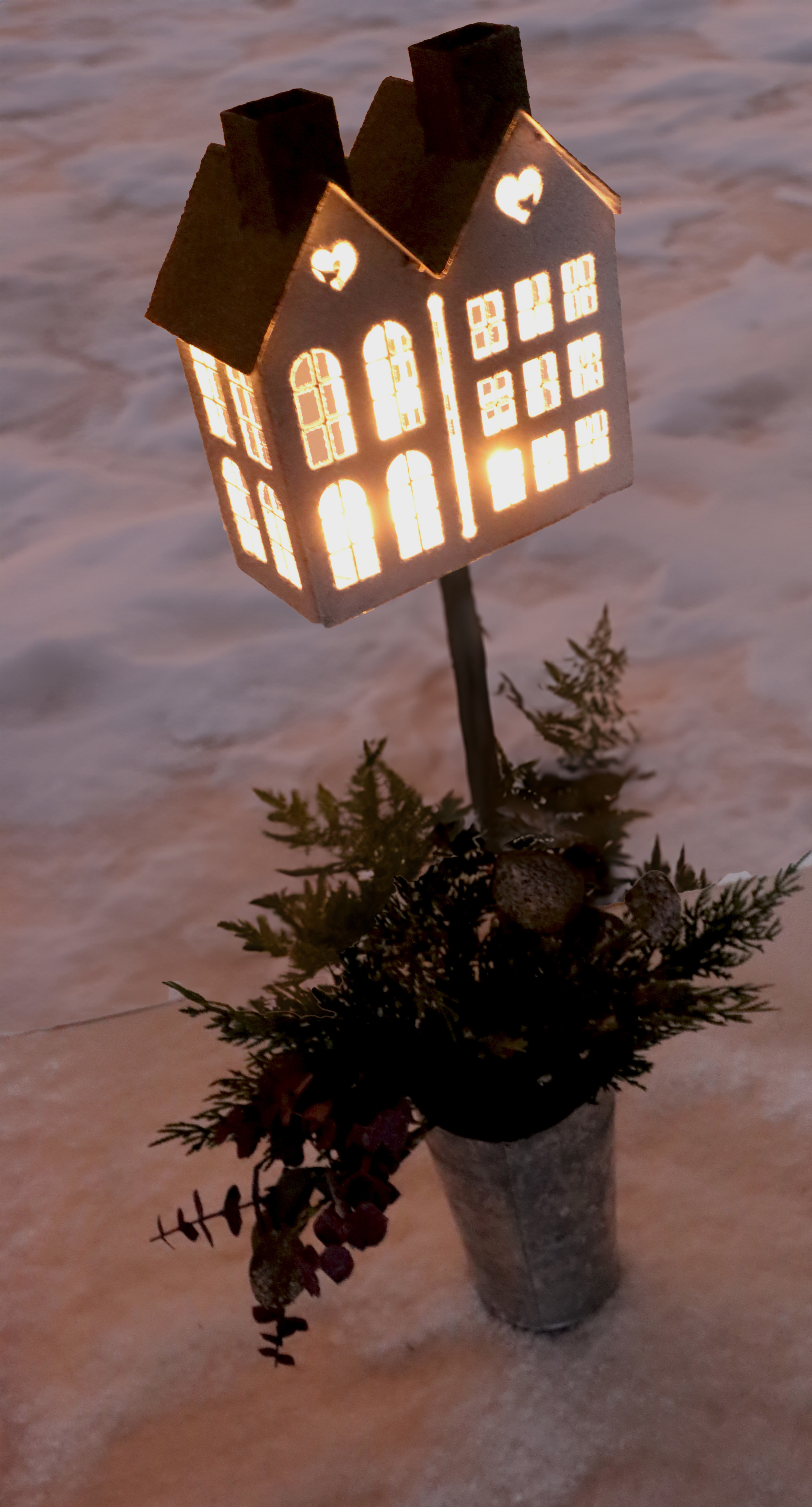 Das liebevoll gestaltete Haus-Motiv der Laterne zieht alle Blicke auf sich, und das sanfte Leuchten, das durch die Metallkonstruktion strahlt, schafft eine zauberhafte Atmosphäre. Setzen Sie auf Qualitätsprodukte, die zeitloses Design mit praktischer Anwendung vereinen und überzeugen Sie Ihre Kunden mit diesem romantischen Blickfang.