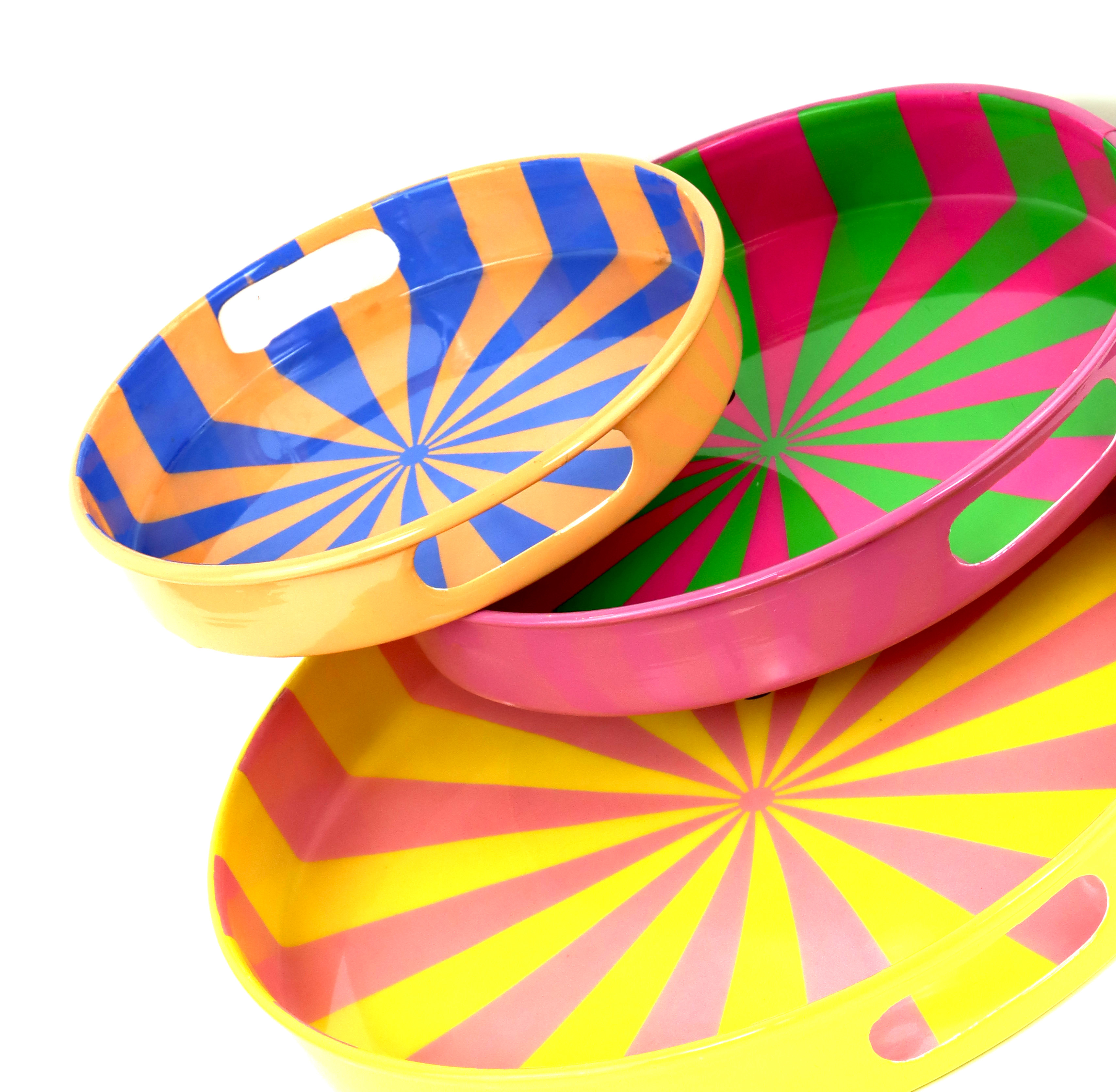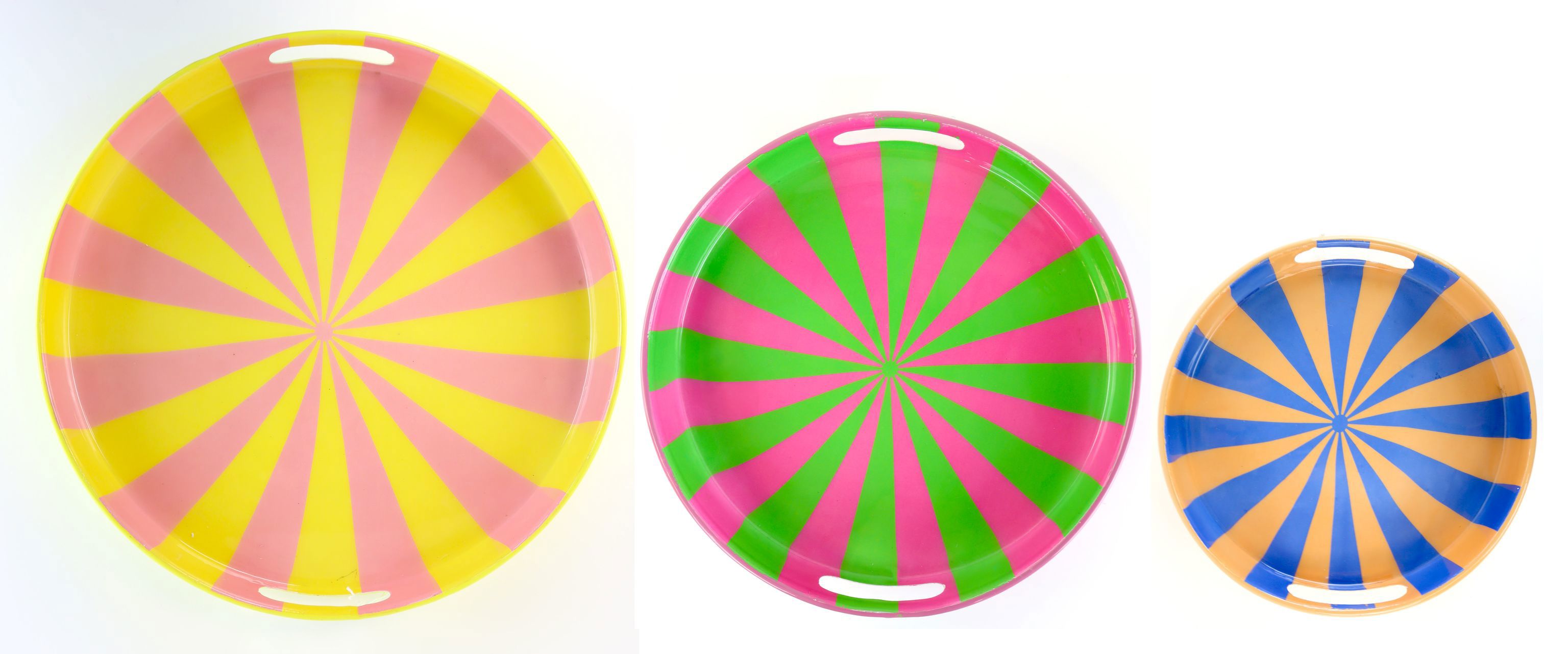 - **Attraktives Design:** Das gestreifte Muster in Verbindung mit der metallischen Struktur verleiht den Tabletts ein zeitlos elegantes Aussehen, das auch in den kommenden Saisons angesagt sein wird.