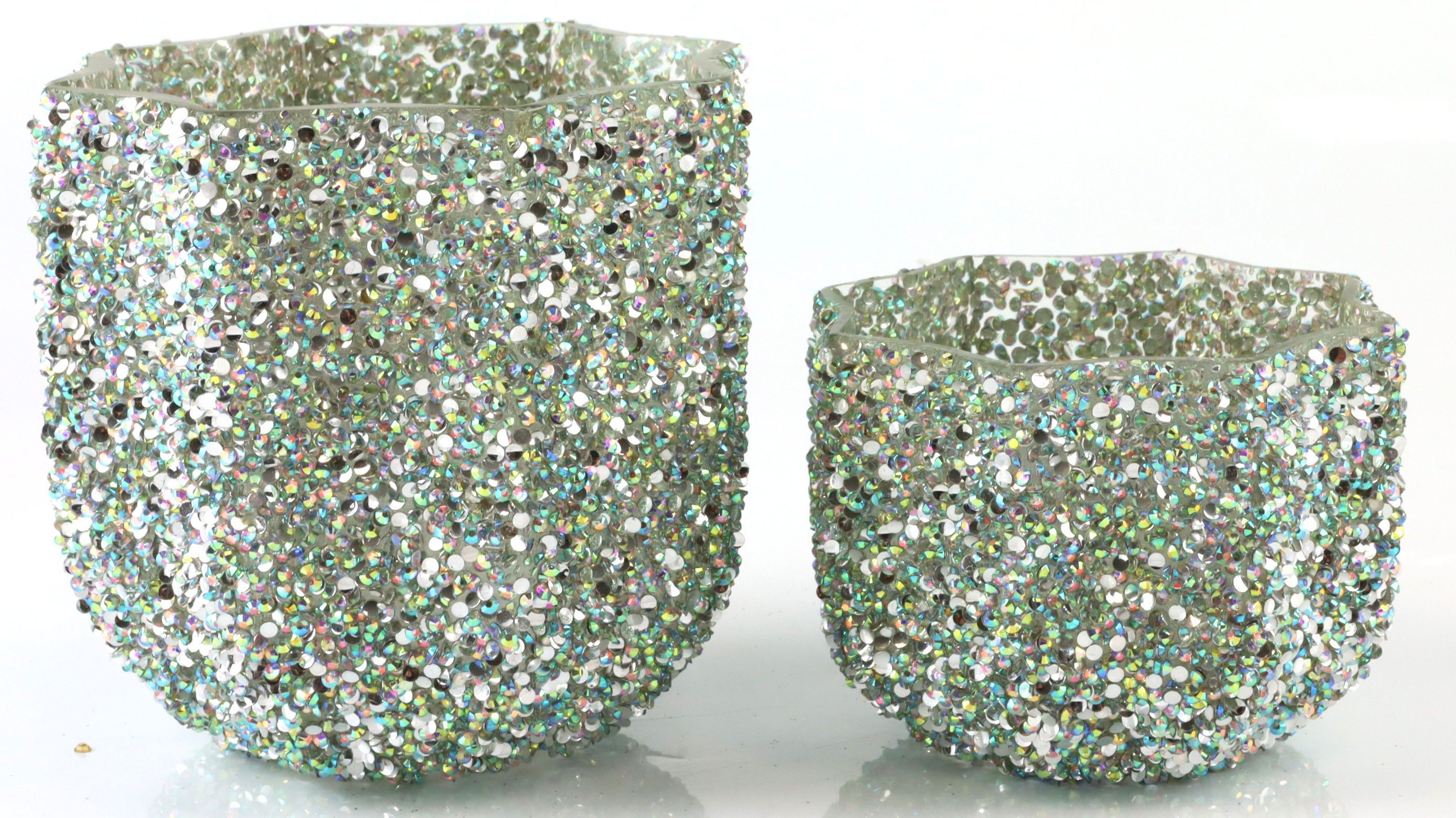 - Elegantes 2-teiliges Windlichterset aus hochwertigem Glas mit Glitzer-Finish