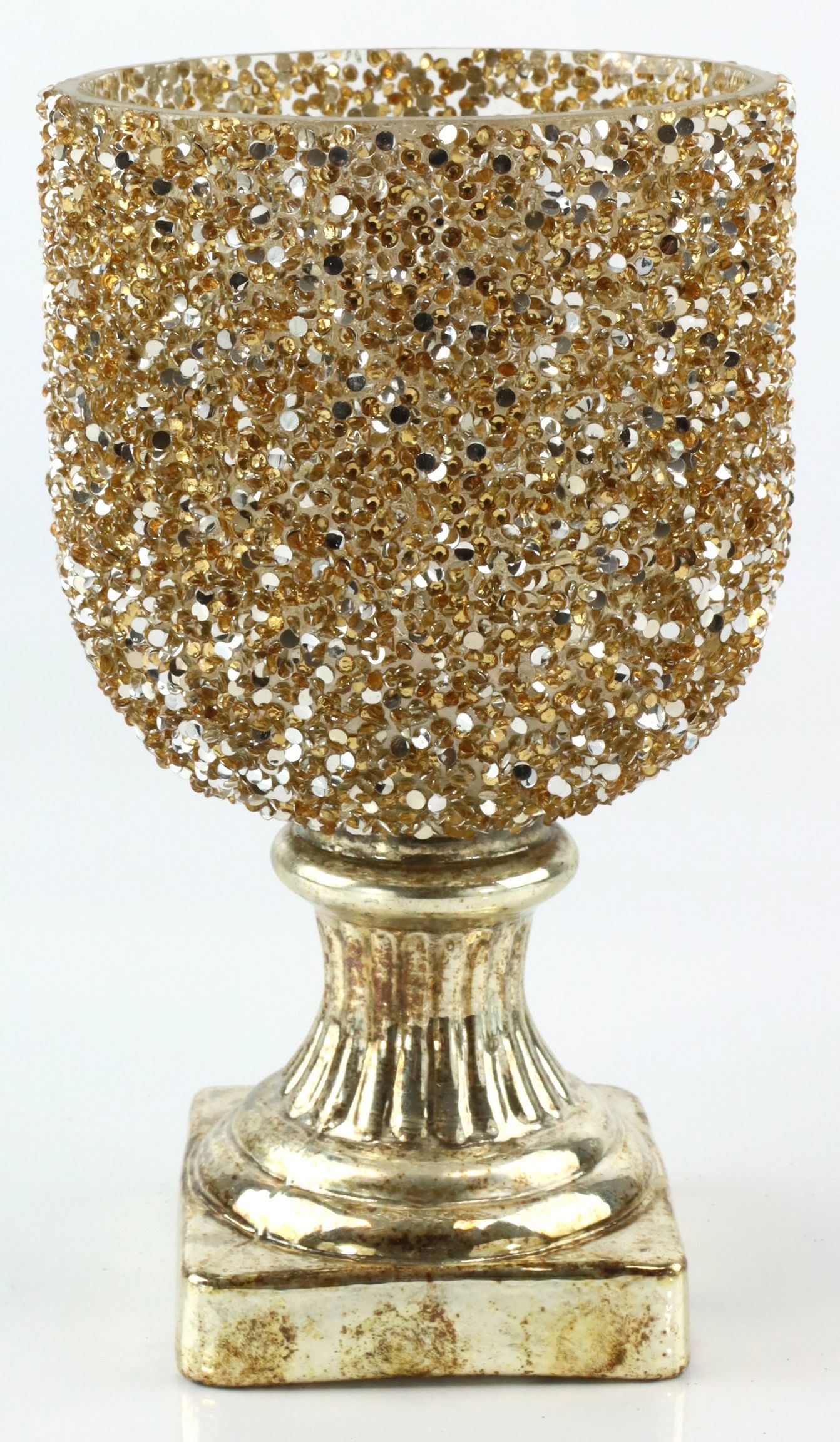 Für eine optimale Auffindbarkeit in Suchmaschinen sollten folgende Keywords berücksichtigt werden: Pokal "Glitz&Glam", Weihnachtsdeko, Dekoration Glitzergold, Wohnaccessoires Einzelhandel, festliche Dekoration Glas, Weihnachts-Pokal gold.
