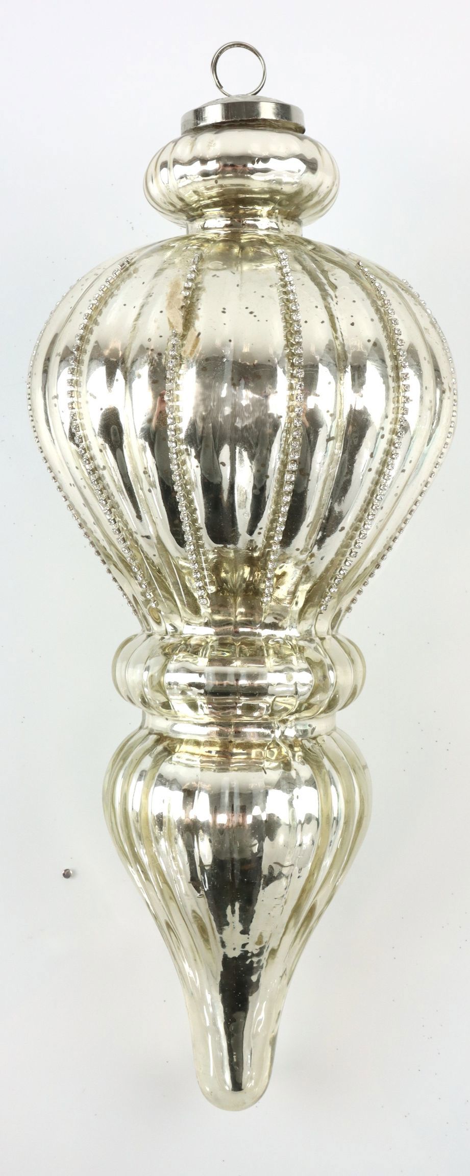 - **Edles Design:** Silberner Glaszapfen mit zeitlosem Charme, ideal für elegante Weihnachtsdekorationen.