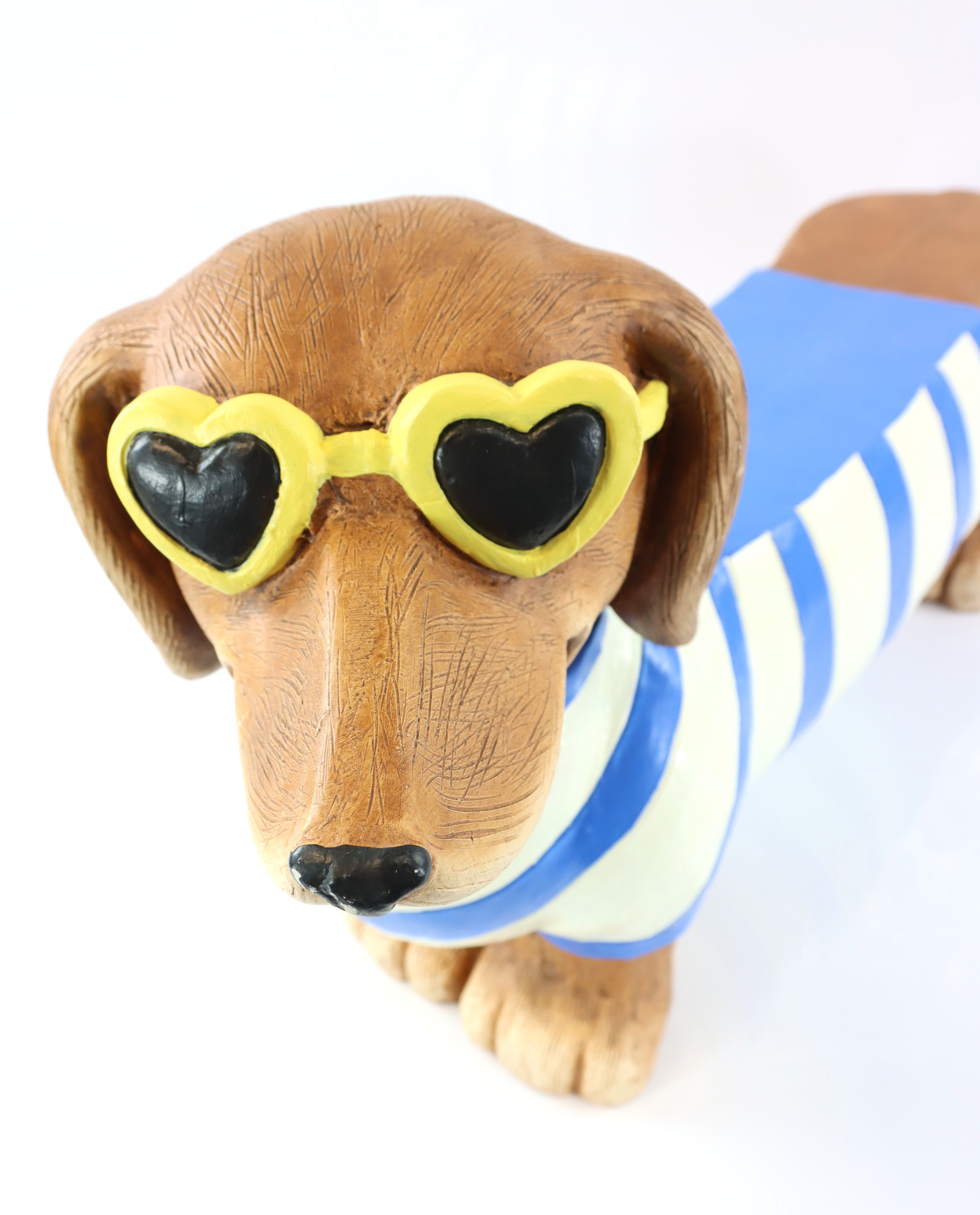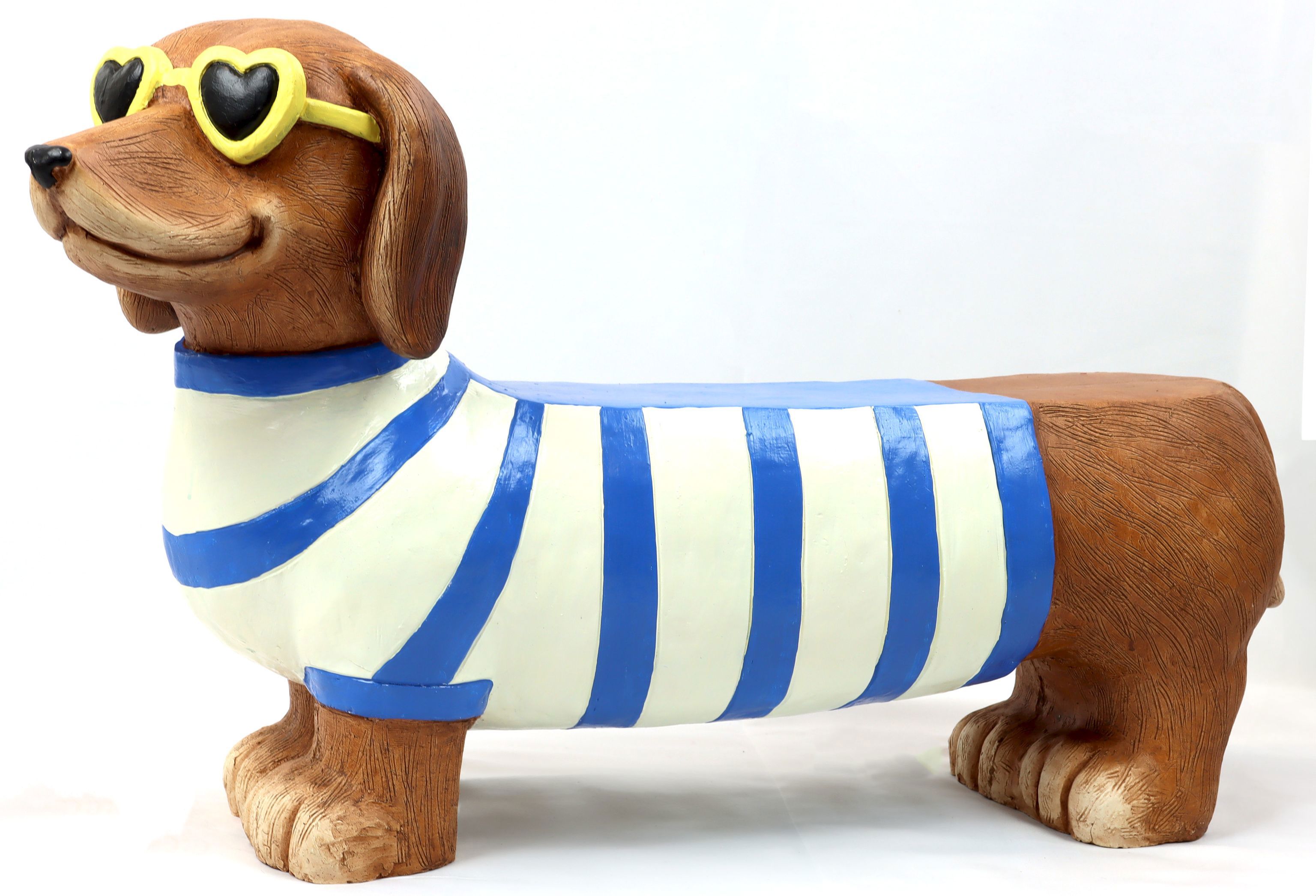 Die HUNDEBANK "DAPPER DOG" präsentiert ein niedliches Dackel-Motiv, das durch seine detailgetreue Gestaltung und den liebevoll designten, blau-weiß gestreiften Pullover aus Magnesia sofort ins Auge fällt. Mit einer beeindruckenden Länge von ca. 76 cm ist sie ein echter Blickfang und fügt sich nahtlos in jede Wohn- und Gartendekoration ein. Die Verwendung von Magnesia verleiht der Hundebank nicht nur Stabilität und Langlebigkeit, sondern auch eine edle Optik, die ihren Kunden einen Hauch von Luxus bietet.