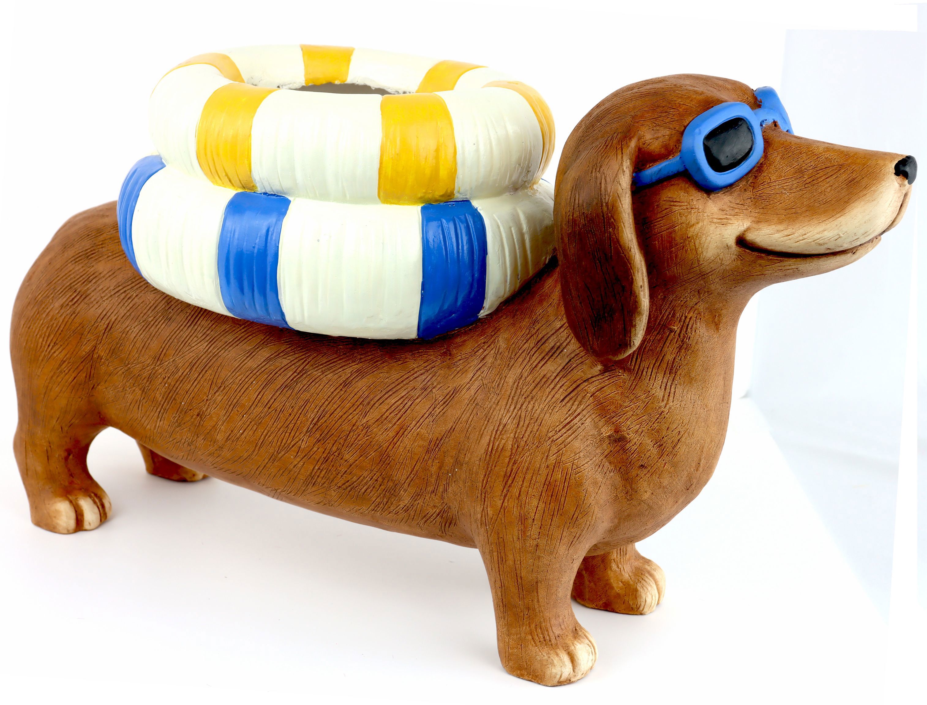 - Attraktives Pflanzgefäß im Dackel-Motiv mit Rettungsringen