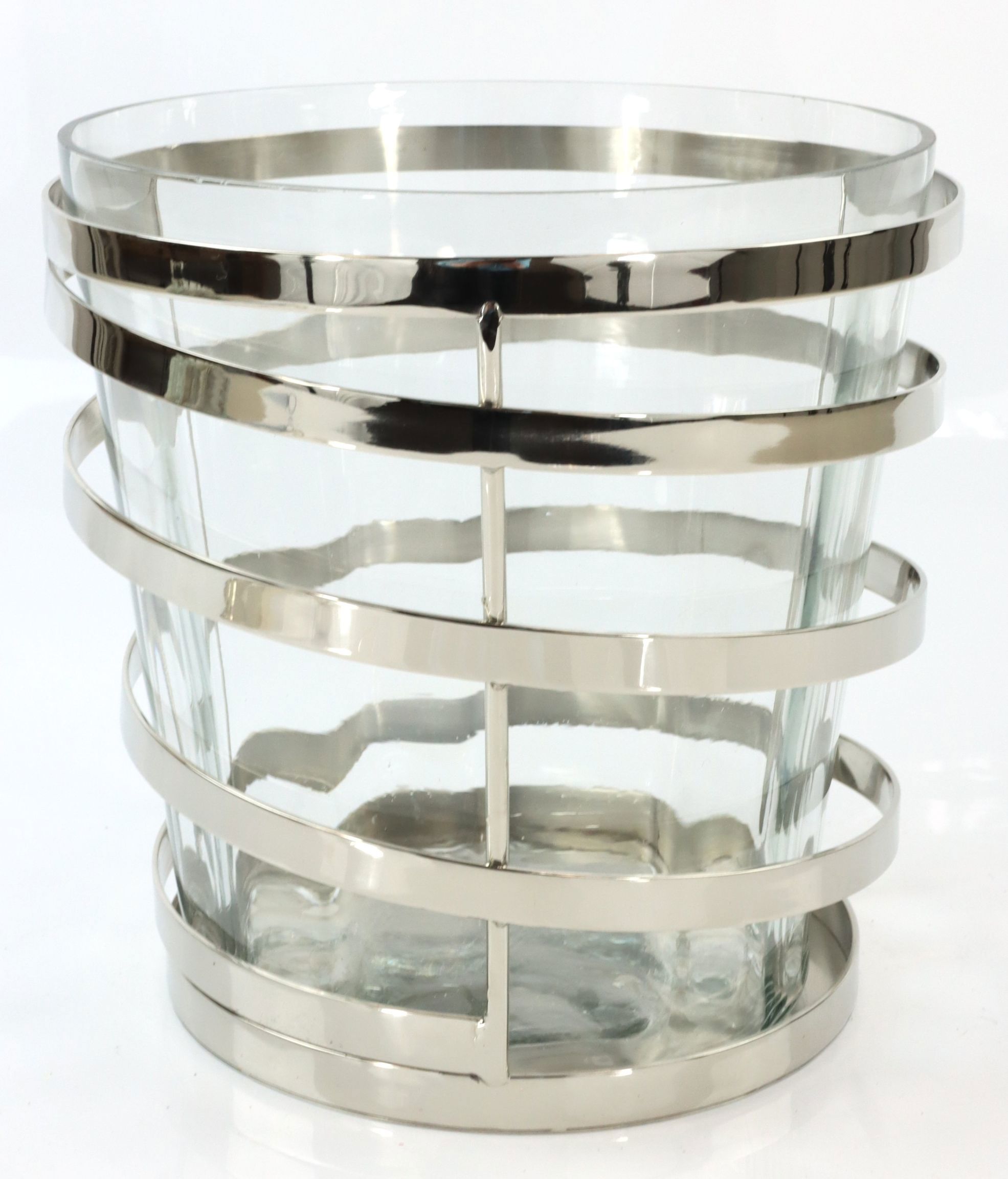 - Edler Flaschenkühler aus hochwertigem Glas und vernickeltem Stahl