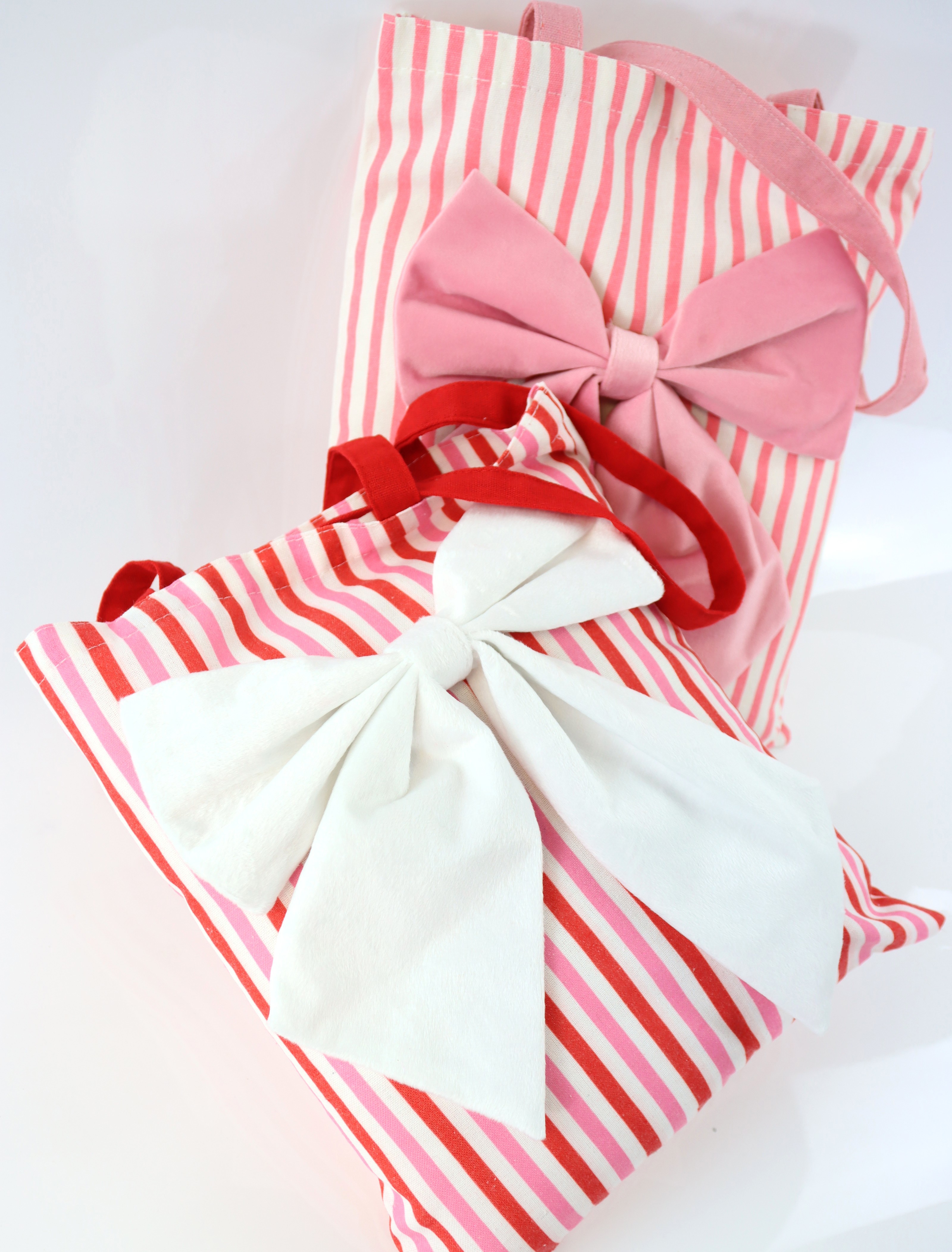 - Dreiteiliges Taschenset im modischen Rot-Weiß gestreiften Design, das Aufmerksamkeit auf sich zieht
