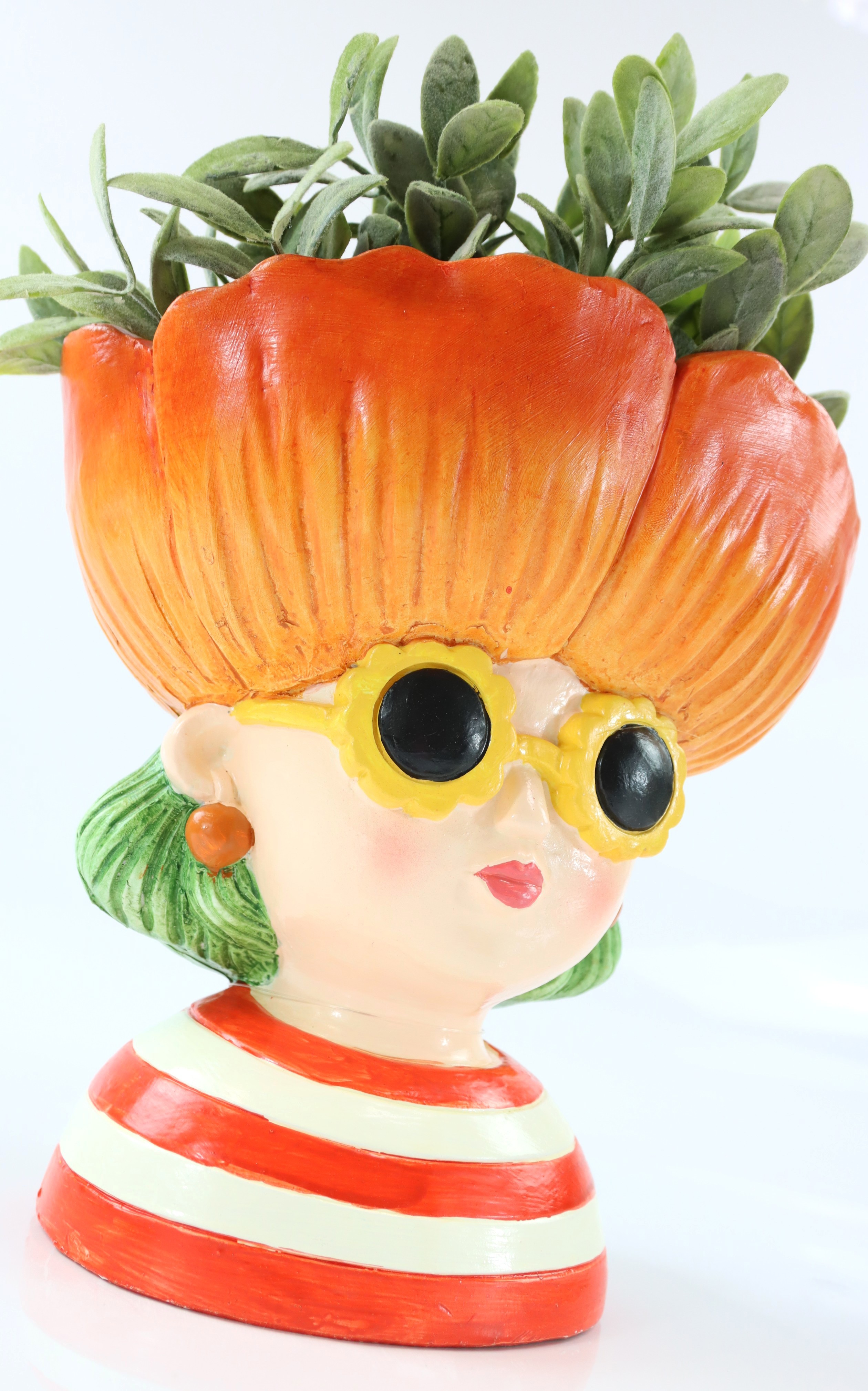 Das "Poppy Girl" ist ein einzigartig gestaltetes Pflanzobjekt in Form eines Frauenkopfes, kunstvoll verziert mit einer leuchtend roten Blume. Aus hochwertigem Magnesia gefertigt, ist es nicht nur ein echter Hingucker, sondern auch äußerst langlebig. Mit einer Höhe von ca. 21 cm bietet es die ideale Größe, um sowohl als dekoratives Element auf einem Tisch als auch auf einem Regal zu wirken. Ihre Kunden werden begeistert sein von der anmutigen Kombination aus Kunst und Natur.
