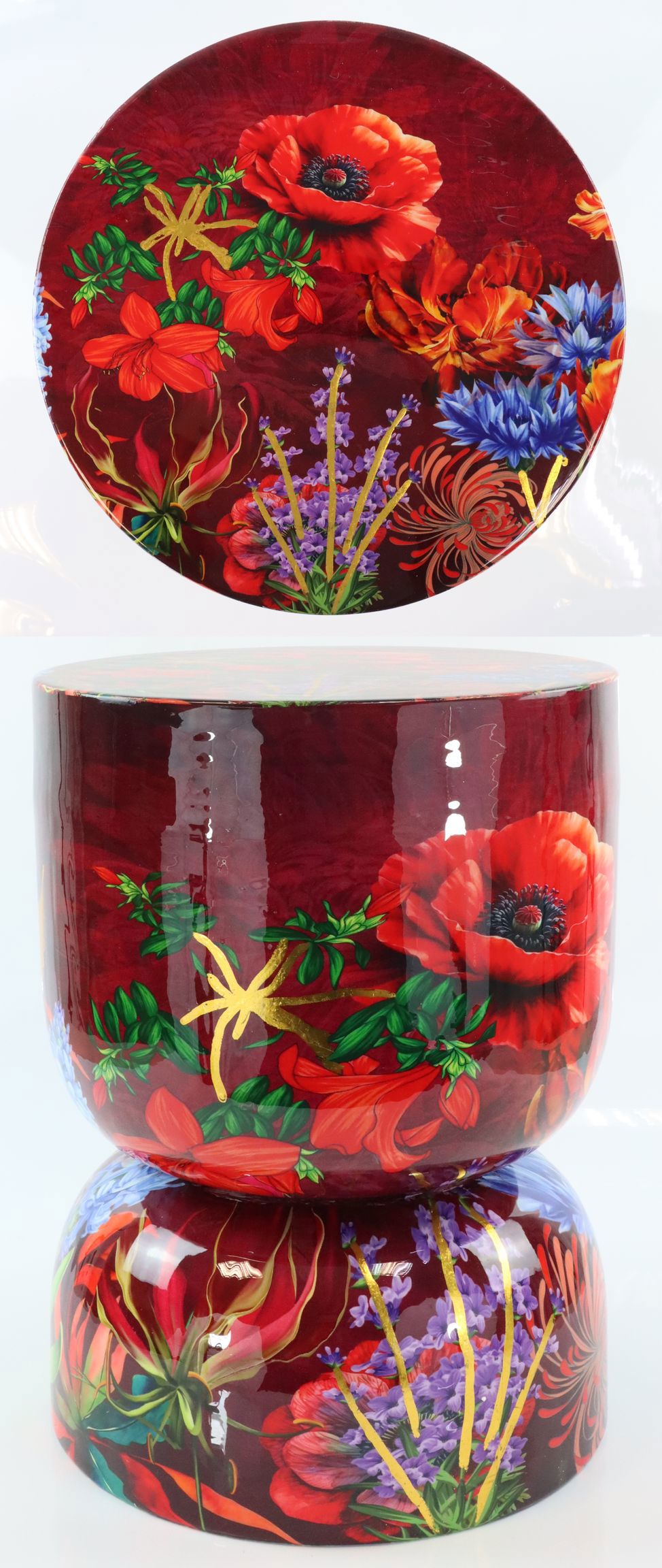 Ideal geeignet für die Saison Frühjahr/Sommer, ist der Hocker "Eden Bloom" die perfekte Ergänzung für jede stilvolle Raumgestaltung. Seine lebendigen Farben und das florale Design verleihen jedem Raum eine frische, einladende Atmosphäre. Besonders in Showrooms, Verkaufsflächen oder Schaufenstern wird dieser Hocker zum Highlight und begeistert durch seine detailreiche Machart.