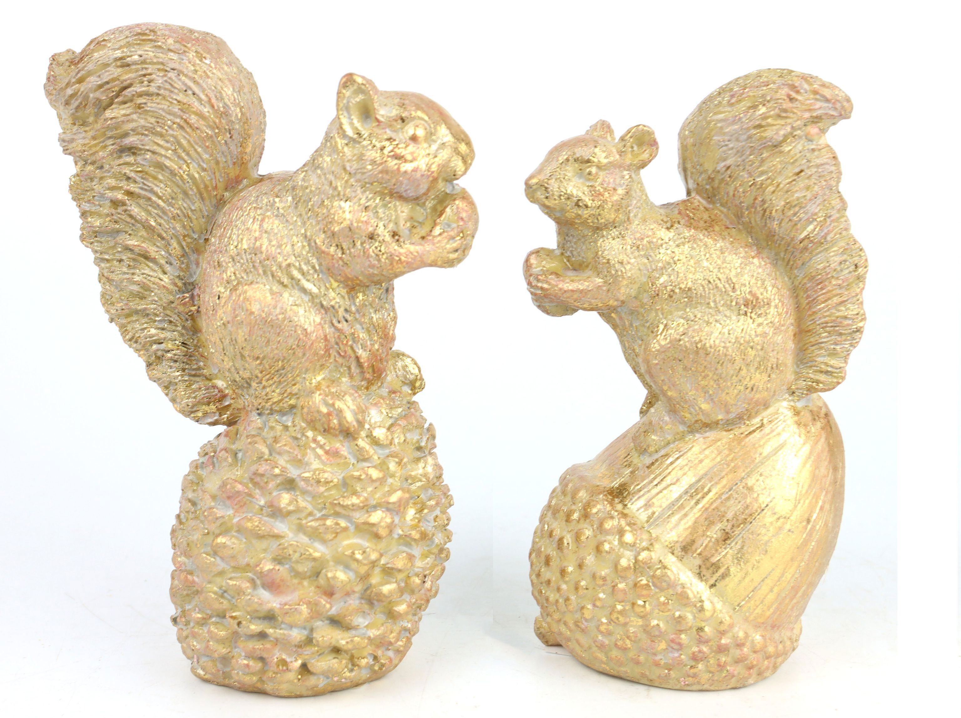 Erweitern Sie Ihr Angebot an stilvollen Wohndekorationen und überzeugen Sie Ihre Kunden von der Finesse und Raffinesse dieses Produktes. Das EICHHÖRNCHEN "GOLDEN ACORN" S/2 ist nicht nur eine Dekoration, sondern ein Erlebnis, das Ihre Herbst/Winter-Auslagen bereichern wird.
