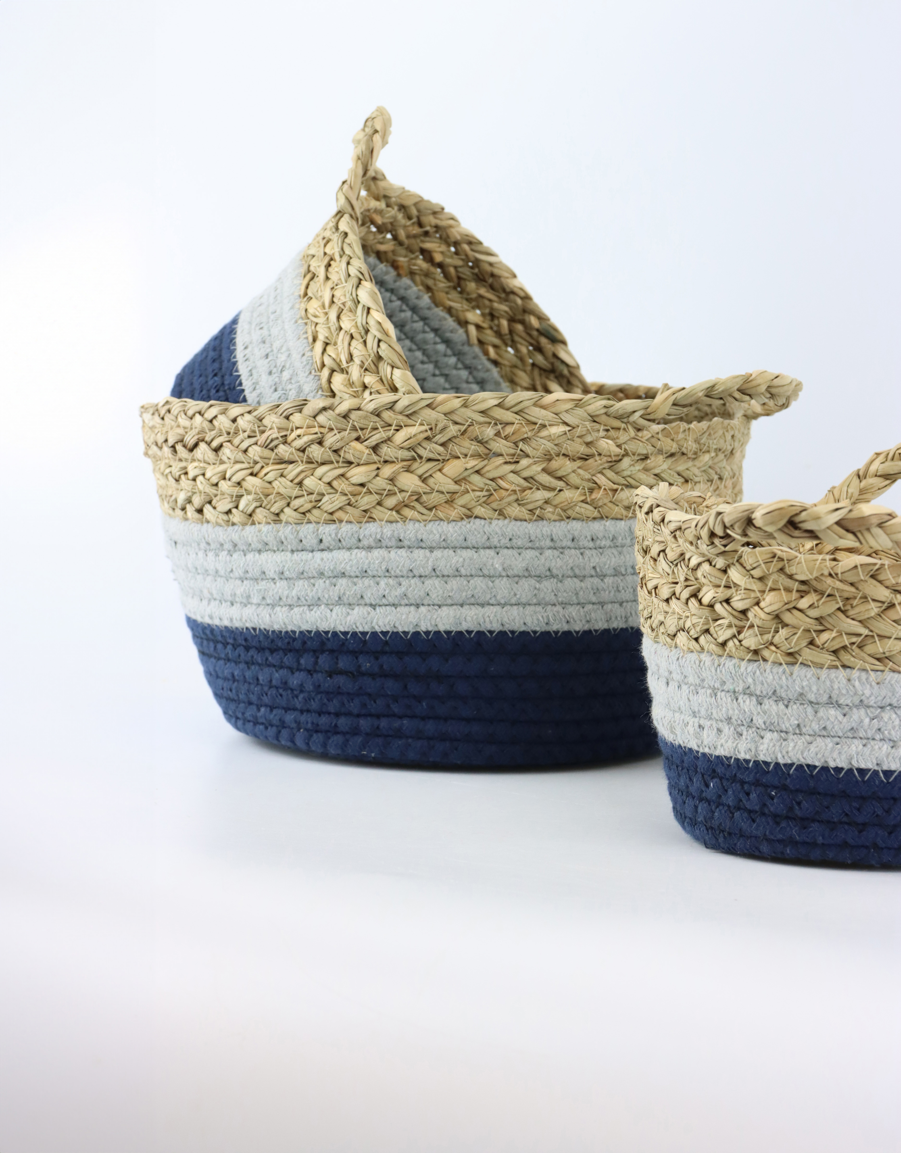 - Set bestehend aus drei handgefertigten Korbschalen aus Seegras