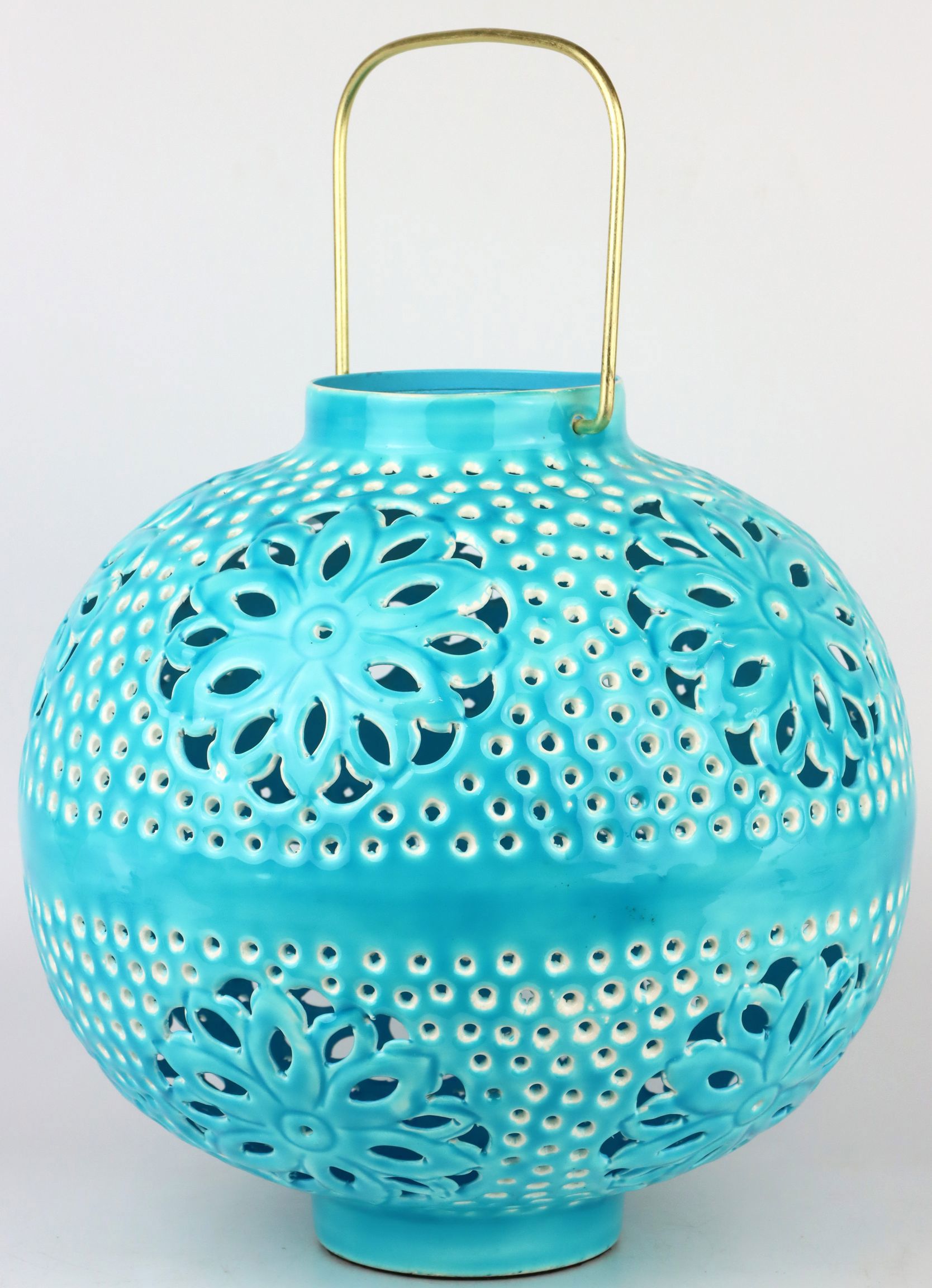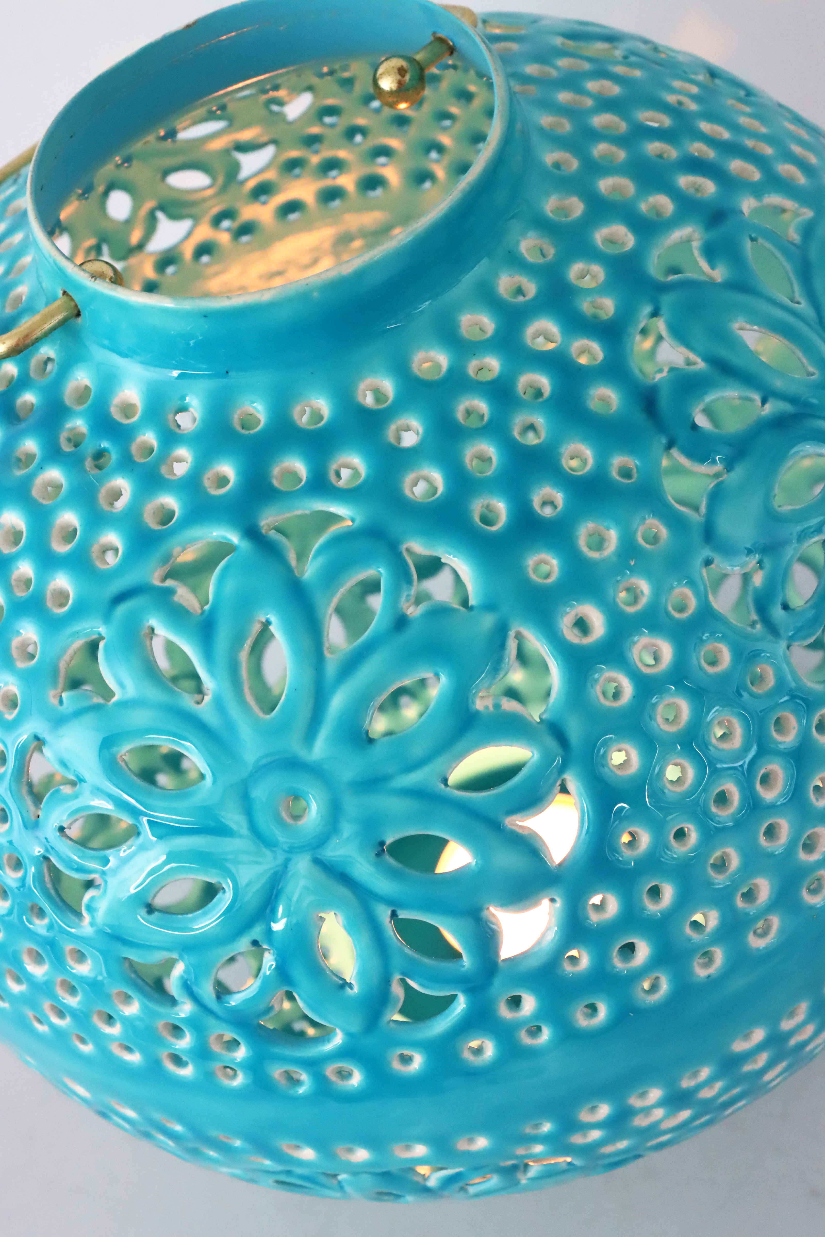 - Handgearbeitete Eisenlaterne in lebendigem Türkis