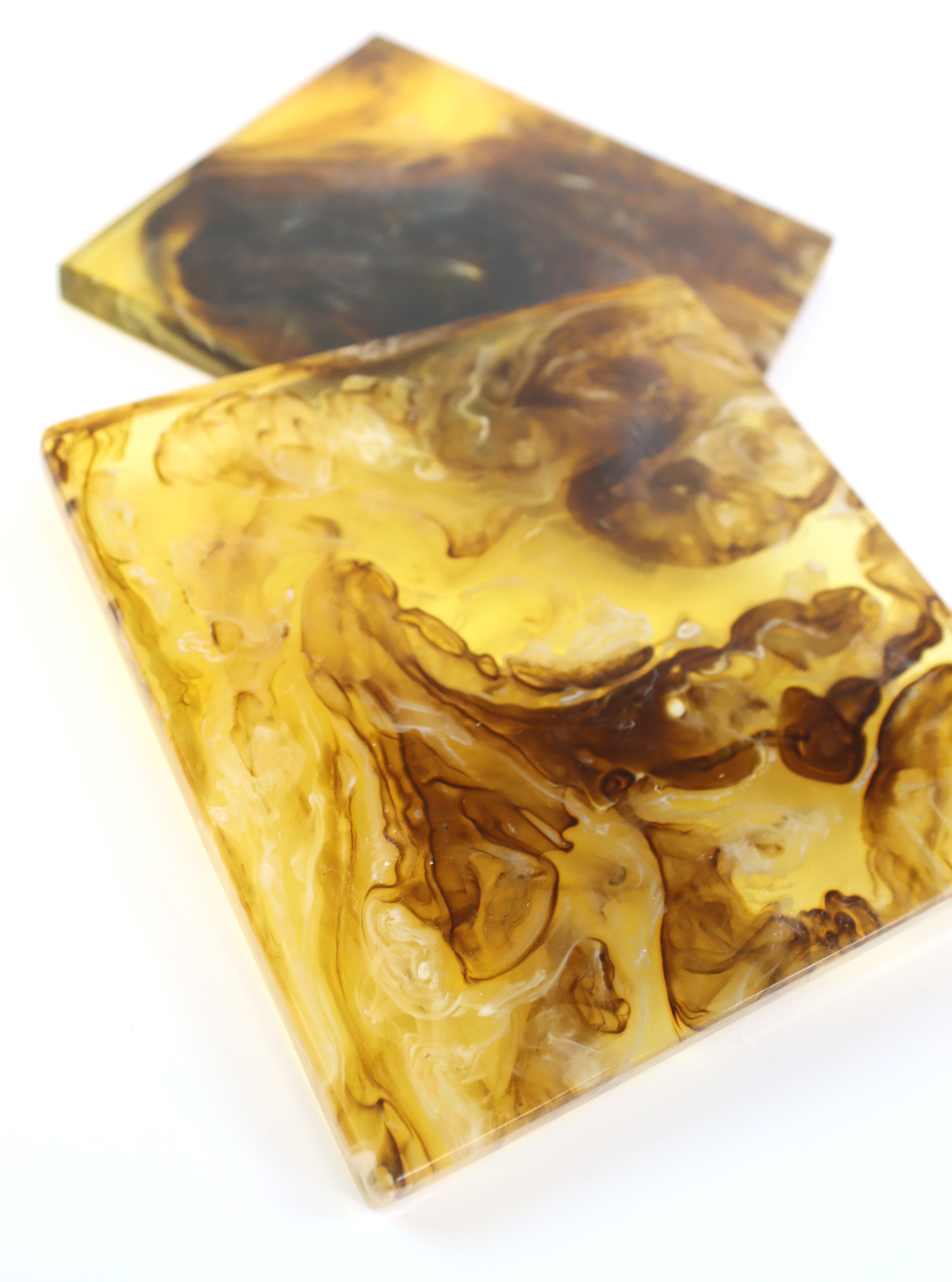Gefertigt aus strapazierfähigem Resin, sind unsere Untersetzer sowohl robust als auch langlebig. Diese Materialwahl garantiert nicht nur eine lange Lebensdauer, sondern verleiht den Untersetzern auch eine edle Optik, die perfekt zum gehobenen Ambiente Ihrer Kunden passt. Ideal für den intensiven Einsatz im Alltag und gleichzeitig schick genug für feierliche Anlässe.