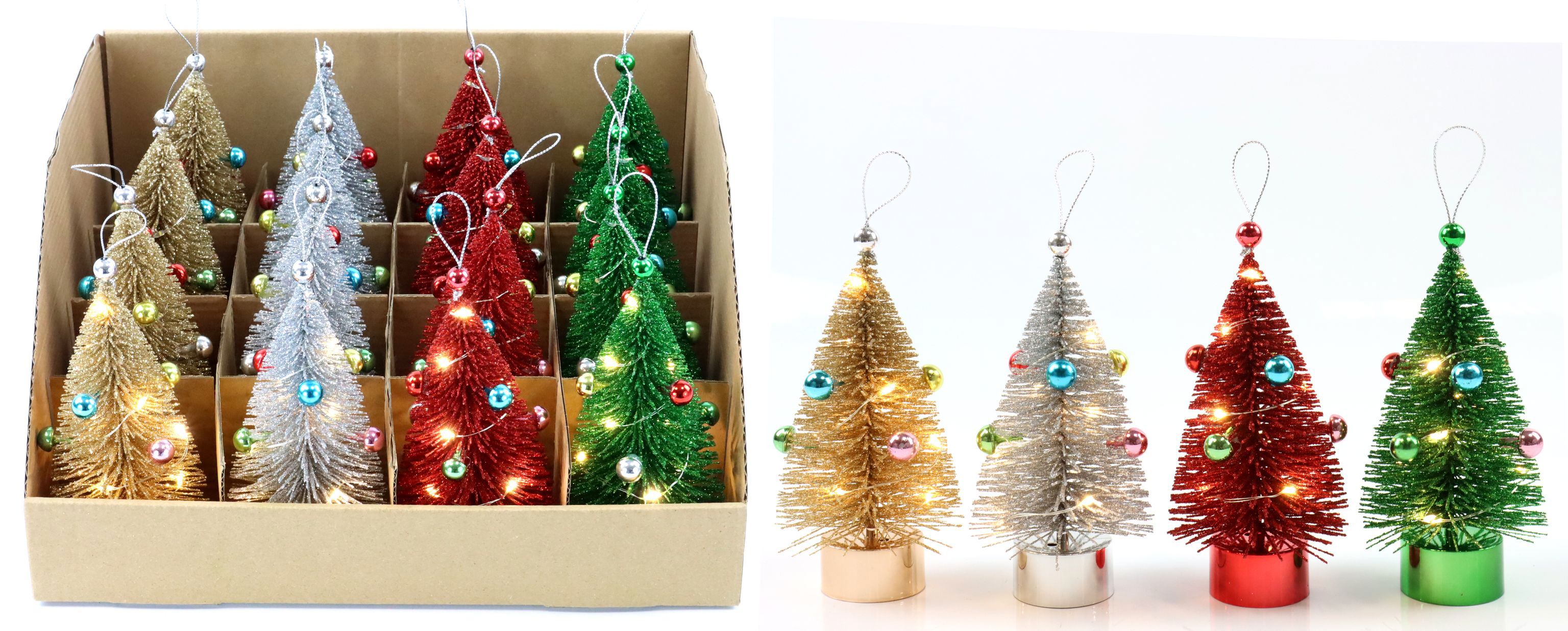 - 16 Mini-Weihnachtsbäume aus hochwertigem Kunststoff mit funkelnden LED-Girlanden