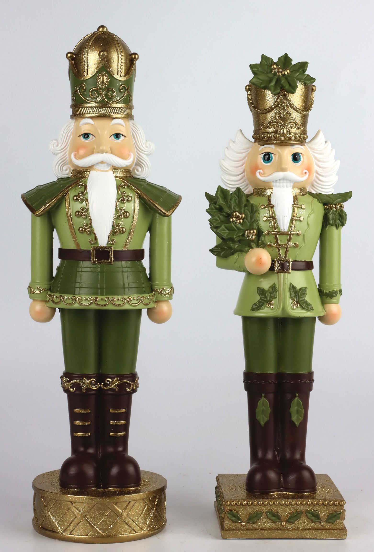 Bringen Sie das magische Flair der Weihnachtszeit in Ihr Ladenlokal mit unserem exquisiten Nussknacker "Green Memories" im praktischen 2er-Set. Perfekt geeignet für Einzelhändler im Bereich Wohnen und Lifestyle, verleiht dieses Set Ihrer saisonalen Dekoration einen Hauch von traditionellem Charme gepaart mit einer modernen Farbgebung. Die beiden Nussknacker bestechen durch ihre satten grünen Töne, die an satte Tannenwälder erinnern und so jedes Schaufenster erstrahlen lassen.