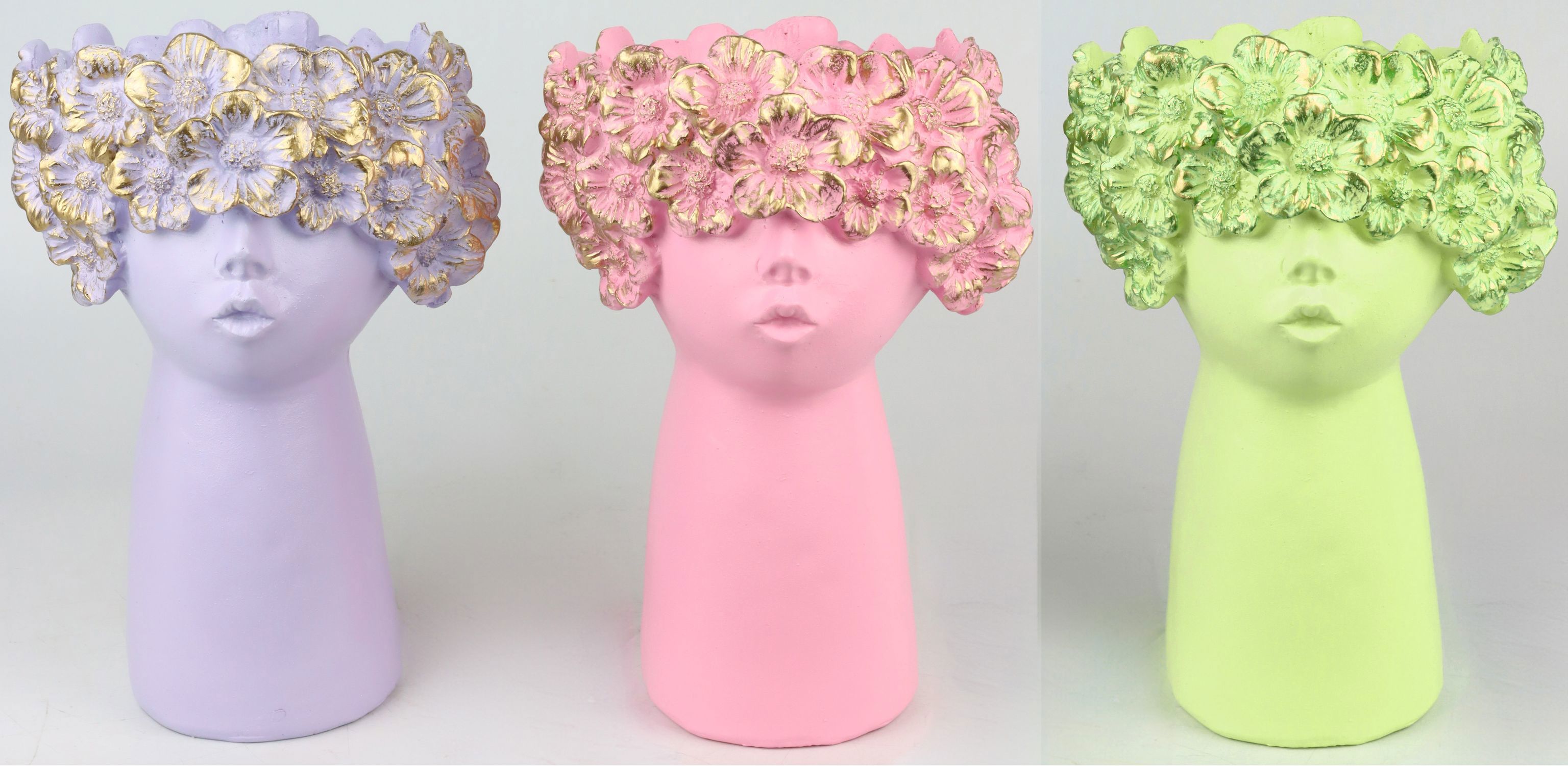 Entdecken Sie die zauberhafte Wirkung unserer Pflanzobjekte "FLORA" im dreiteiligen Set, das speziell für die Frühjahr/Sommer-Saison entwickelt wurde. Mit diesen kunstvollen Pflanzobjekten bringen Sie einen Hauch von Eleganz und Originalität in Ihr Geschäft oder Ihren Showroom. Die stilvollen Köpfe mit kunstvoll arrangierten Blumen sind aus hochwertigem Kunststoff gefertigt und messen ca. 26 cm. Sie bieten eine langlebige, wetterfeste Lösung für Ihre Dekoration, die weder Pflege noch Wasser benötigt.