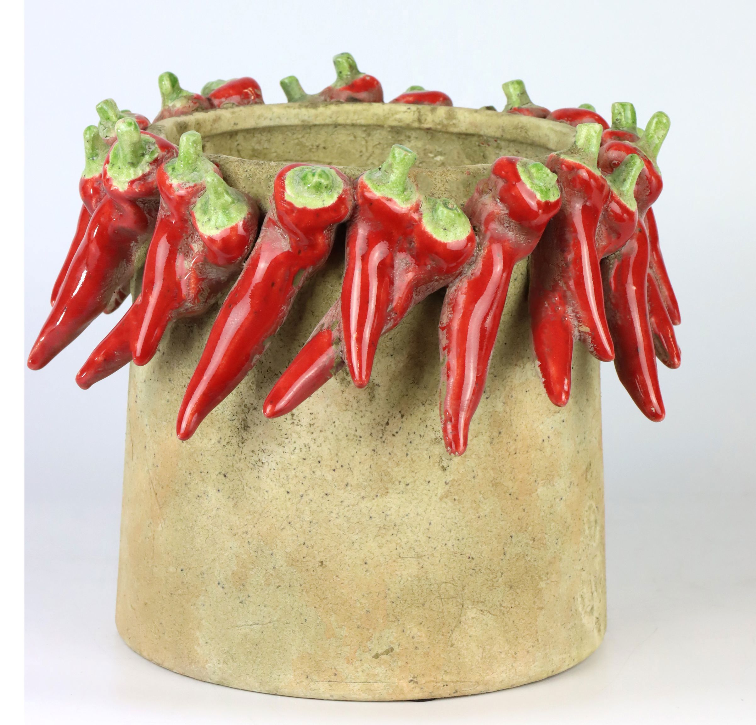 Der Übertopf "RED PEPPER" ist aus hochwertiger Keramik gefertigt und vereint langlebige Qualität mit trendigem Design. Dies macht ihn nicht nur zu einem funktionalen Pflanzenbehälter, sondern auch zu einem begehrten Dekorationsobjekt für den Frühling und Sommer. Ihre Kunden genießen die Vielseitigkeit dieses Produkts, das in Wohn- und Geschäftsräumen gleichermaßen gut zur Geltung kommt. Ob auf einem Sideboard im Wohnzimmer, im Eingangsbereich eines Geschäfts oder als Highlight auf dem Tisch einer Sommerterrasse – dieser Übertopf setzt Akzente.