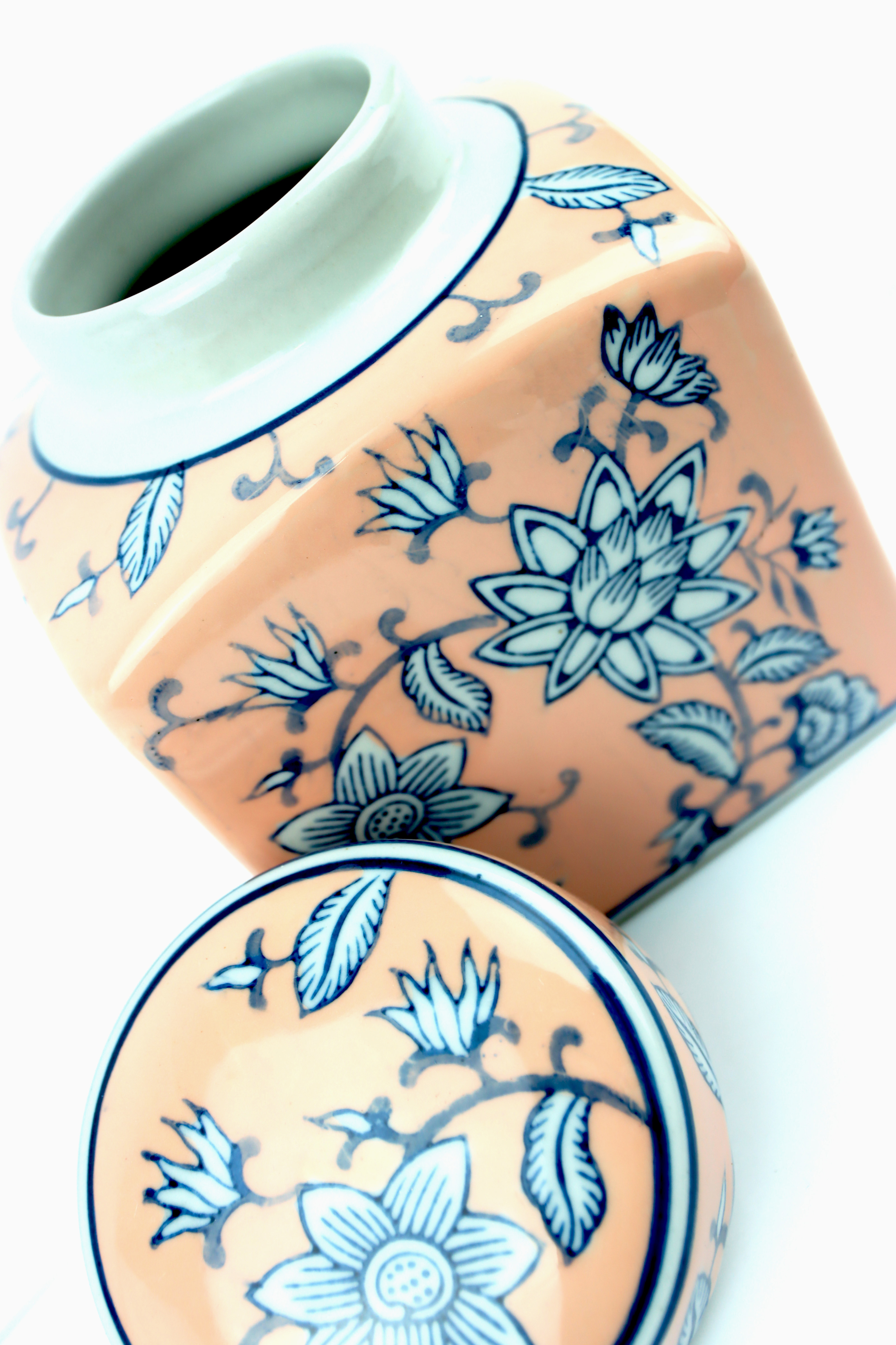Entdecken Sie die exquisite Eleganz der Objektdose "Ming" – ein Meisterwerk traditioneller Handwerkskunst, das Kultur und Stil in jedem Detail verkörpert. Diese chinesische Porzellandose ist mehr als nur ein dekoratives Element; sie ist ein Ausdruck von Raffinesse und eine Hommage an die klassische asiatische Ästhetik. Mit ihrem zarten Rosaton und detailverliebten floralem Muster fügt sie sich nahtlos in jeden Wohn- und Geschäftsraum ein.
