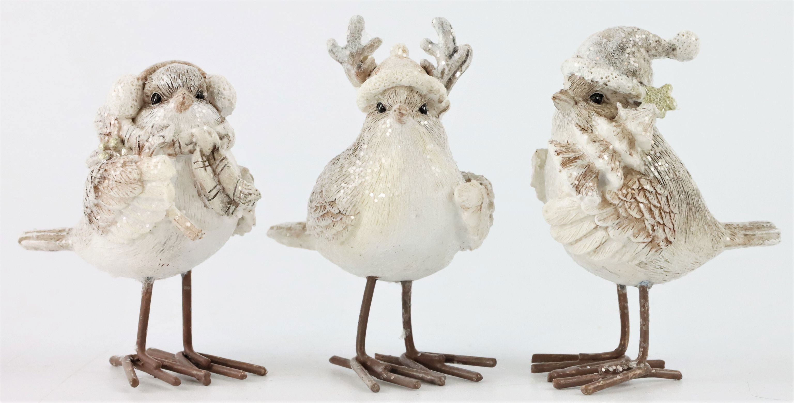 DEEntdecken Sie eine wunderschöne Möglichkeit, Ihren Wohn- oder Geschäftsbereich in diesem Winter zu dekorieren - mit unserem speziellen Set von drei "Wintervögeln". Unter der Artikelnummer 5109 finden Sie unsere eleganten und detailreich gestalteten Figuren, die speziell designed wurden, um Ihrem Raum den festlichen Touch zu verleihen, den er verdient.