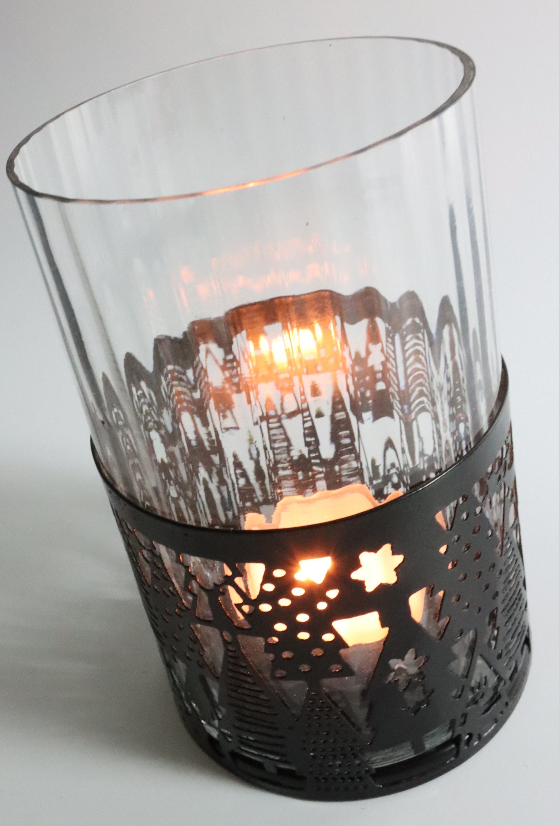 Dank der stimmungsvollen Lichtakzente schaffen die Windlichter eine behagliche Atmosphäre, die das Herz Ihrer Kunden erwärmt und deren Zuhause in ein festliches Winterwunderland verwandelt. Ihre einzigartige Optik wird durch die zarte Lichtdurchlässigkeit des Glases betont, während die metallischen Schwarzelemente subtile, elegante Schatten werfen, die an einen winterlichen Wald erinnern.