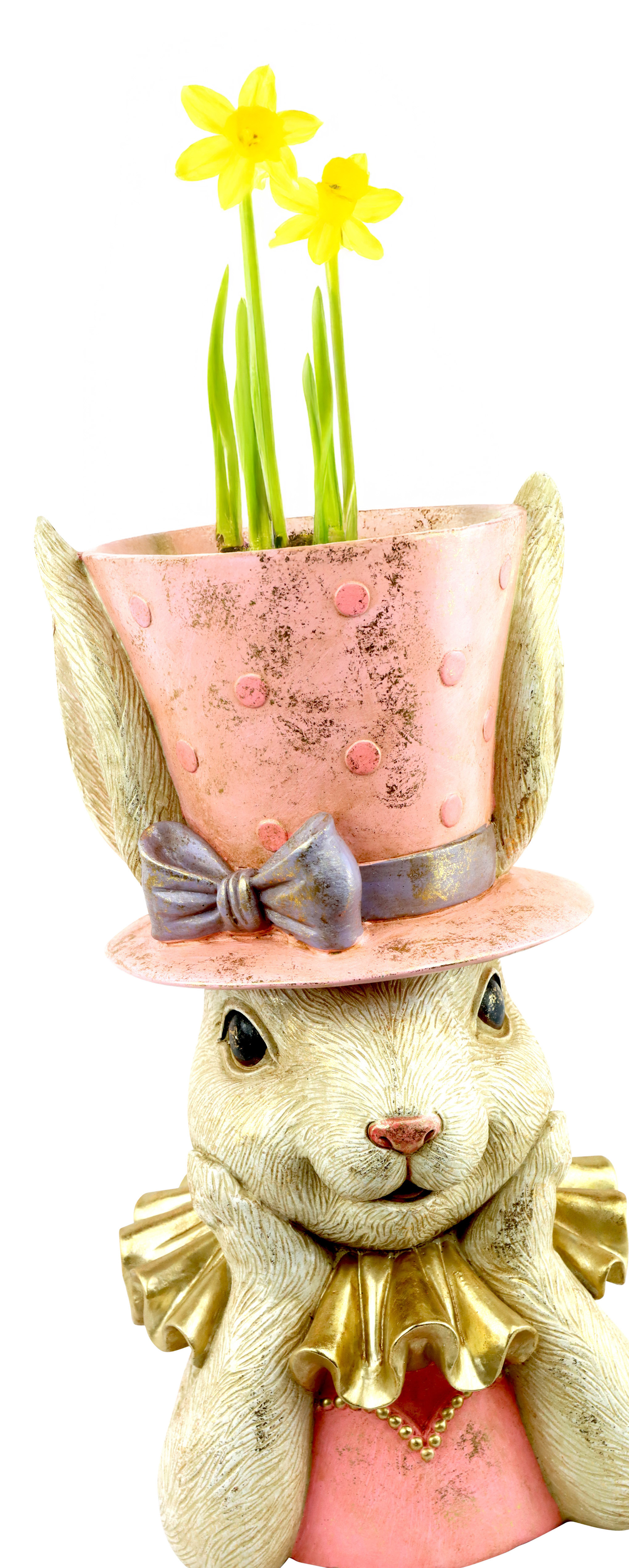 Mit einer Höhe von ca. 34 cm in einem zarten Rosa setzt der Hasenübertopf auffällige Akzente auf jedem Tisch, Fensterbrett oder Wandregal und wird zum Blickfang in jeder Ausstellung. Seine liebevoll gestalteten Details fangen die verspielte Natur des Osterfestes ein und bieten Ihren Kunden die Gelegenheit, ihre Pflanzen stilvoll und passend zur Saison zu präsentieren. Ob Solo oder als Teil einer größeren Dekoration – "Bunnyville" sorgt für Frische und Fröhlichkeit in Ihren Räumlichkeiten.