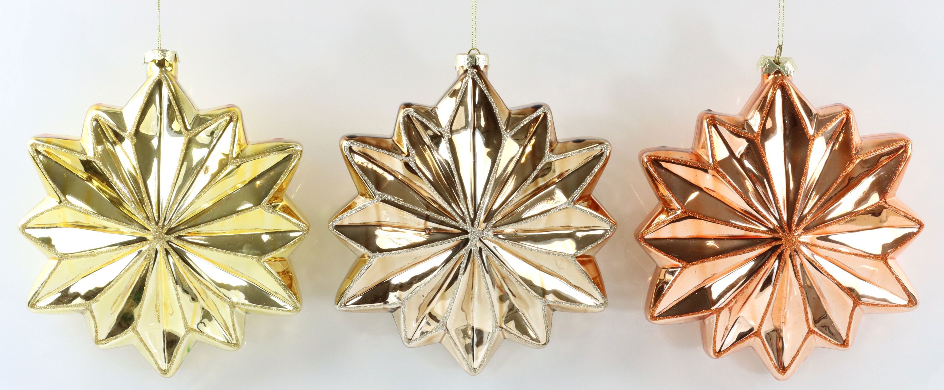 - _Elegantes 3-teiliges Set_: Bestehend aus drei Glassternen in einer harmonischen Farbgebung.