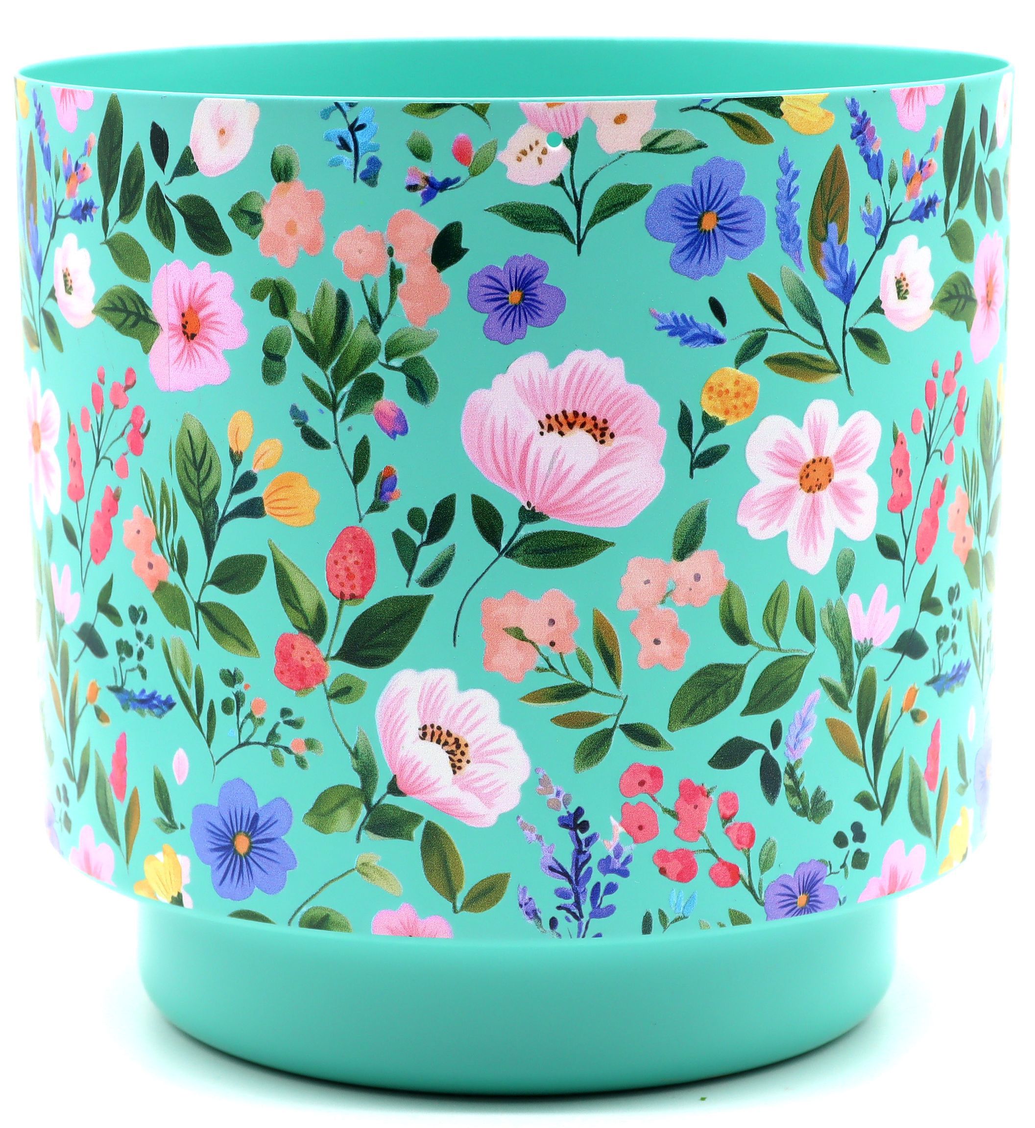 Entdecken Sie den ÜBERTOPF "FLOWER POWER" und bringen Sie mit diesem einzigartigen Design frischen Schwung in die Wohn- und Lifestyle-Abteilung Ihres Geschäfts! Dieser Übertopf aus der Saison Frühjahr/Sommer beeindruckt durch seine lebendigen Farben und sein hochwertiges Material. Mit seinem leuchtenden Türkiston und dem floralen Muster wird er zum Blickfang in jedem Raum und verleiht Ihren Pflanzarrangements einen modernen Look.