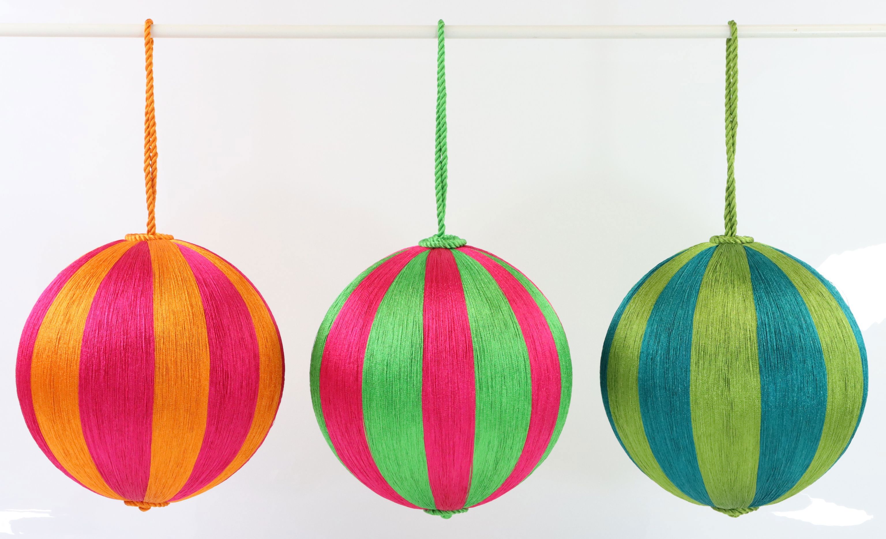 Verleihen Sie Ihrer Weihnachtsdekoration einen Hauch von Eleganz und Glamour mit unserem exklusiven Kugelset "Silken Lines". Dieses hochwertige 3-teilige Set besteht aus Weihnachtskugeln mit einem Durchmesser von 20cm, die sowohl aus feinem, buntem Seidenstreifen als auch aus robustem Kunststoff gefertigt sind. Sie sind die perfekte Ergänzung für jeden stationären Einzelhandel im Bereich Wohnen und Lifestyle, der seinen Kunden zur festlichen Jahreszeit etwas Besonderes bieten möchte.