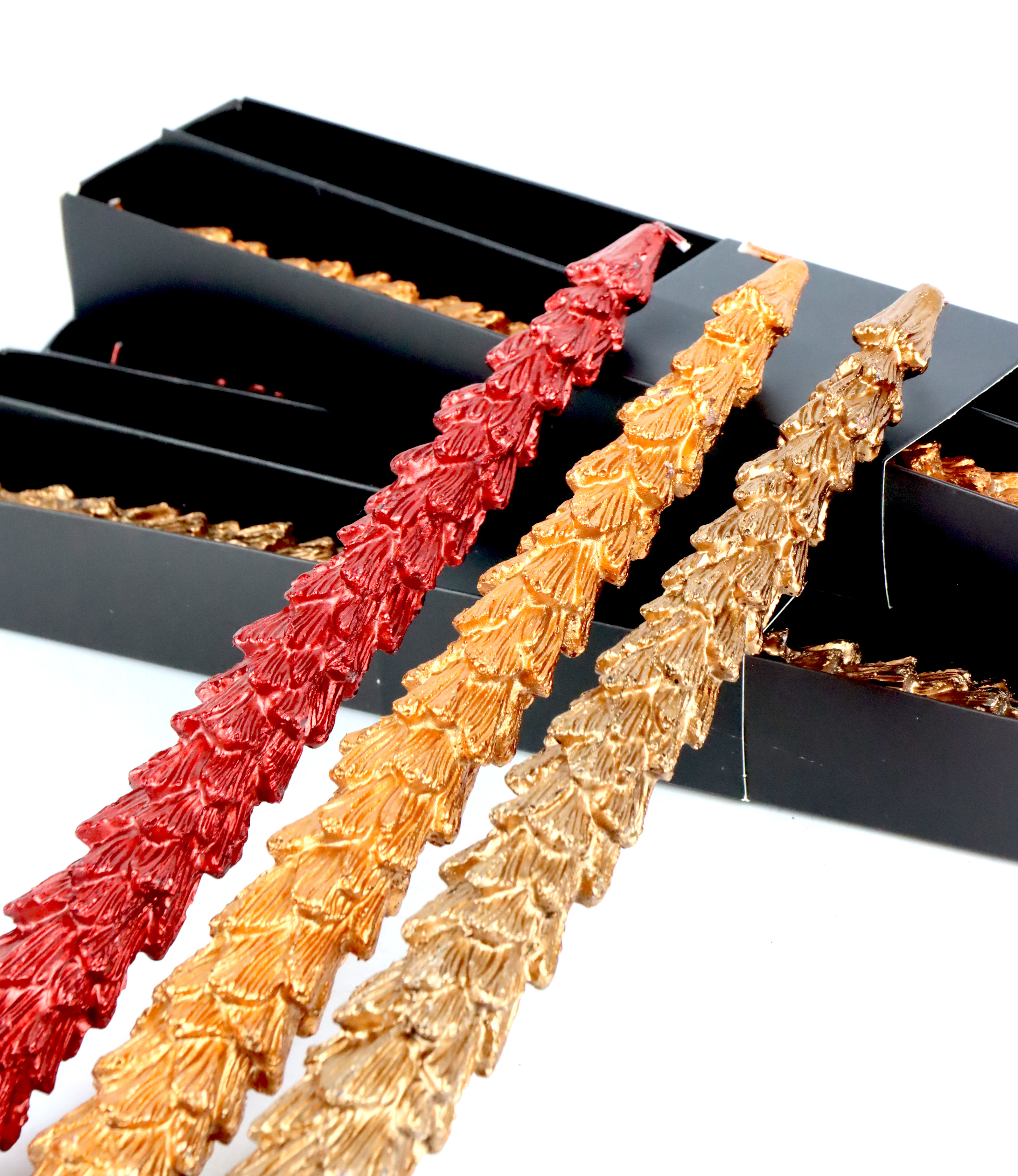- **Set-Inhalt**: 6 stilvolle Stabkerzen in Tannenbaumform