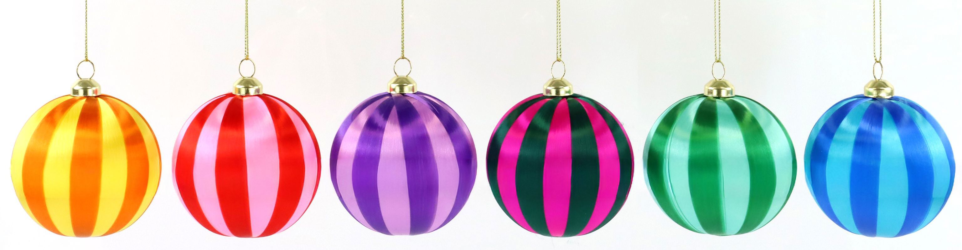 Die farbigen Seidenstreifen der Kugeln reflektieren das Licht auf eine ganz besondere Weise und erzeugen so ein lebendiges Spiel aus Farben und Glanz. Dank der robusten Kunststoffbasis sind die Kugeln nicht nur ästhetisch ansprechend, sondern auch langlebig und für den häufigen Gebrauch bestens geeignet. Dies macht sie zur idealen Wahl für den hektischen Einzelhandel, wo Langlebigkeit und Qualität von entscheidender Bedeutung sind.