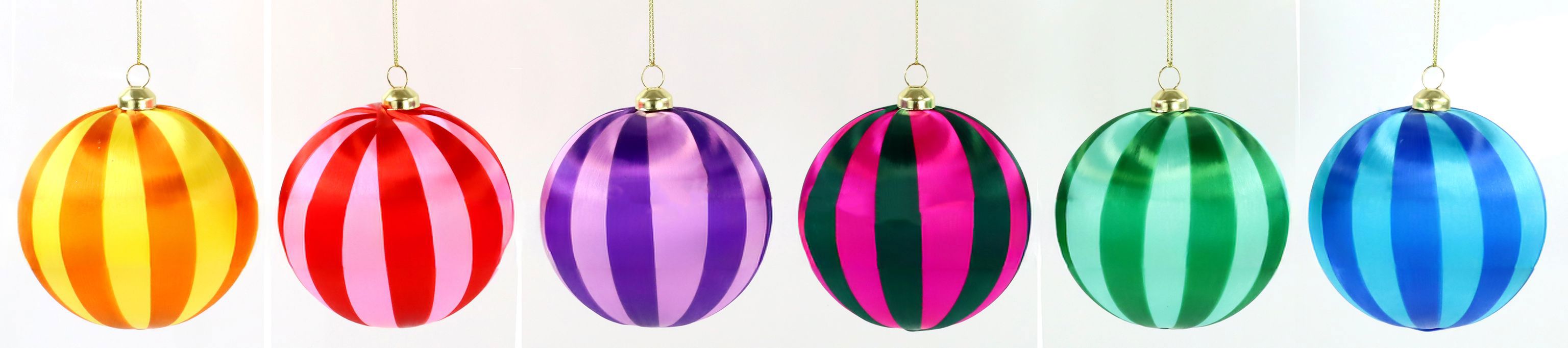 Die "SILKARA" Weihnachtskugeln zeichnen sich durch ihre lebendige Farbgestaltung und den schillernden Glanz aus. Bunte Streifen ziehen sich elegant über die Kugeln und erzeugen ein verspieltes, stilvolles Muster, das besonders im Licht der Weihnachtsbeleuchtung wunderschön zur Geltung kommt. Die Kombination aus hochwertigen Materialien sorgt für eine langlebige und strapazierfähige Weihnachtsdekoration, die sich perfekt in jedes stilvolle Wohnambiente einfügt.