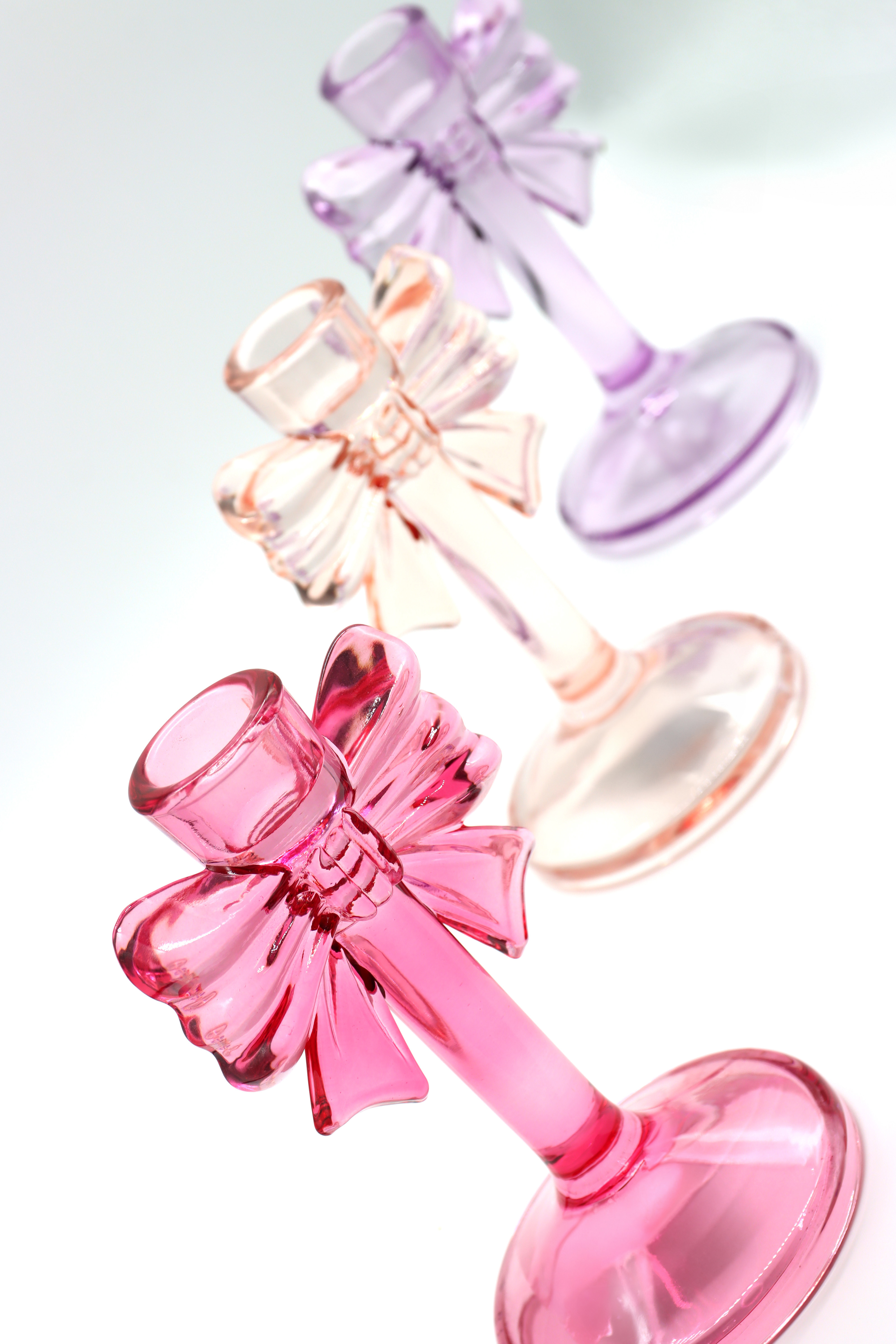 - Aus Glas, mit eleganten Schleifen in Rosatönen