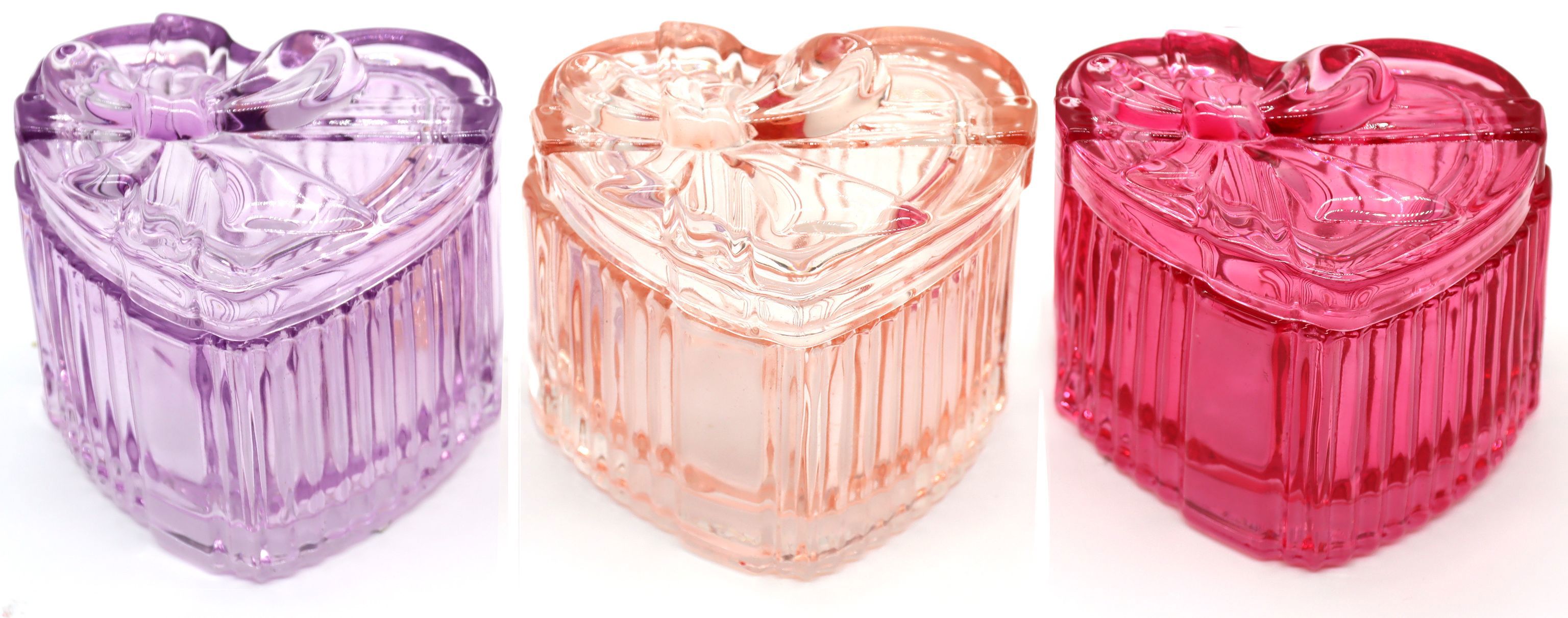 SEO-optimiert für Ihre Lebensstilmerchandising-Bedürfnisse, bieten die HERZDOSEN "GLOW BOW" eine attraktive Möglichkeit, Ihr Produktsortiment zu erweitern. Die Glasdosen sind robust, leicht zu reinigen und können sowohl als stilvolles Präsentationsobjekt als auch als funktionale Aufbewahrung genutzt werden. Ihre Zielgruppe wird die vielseitigen Einsatzmöglichkeiten zu schätzen wissen – ob zur Aufbewahrung von Schmuckstücken, kleinen Souvenirs oder als elegantes Geschenk.