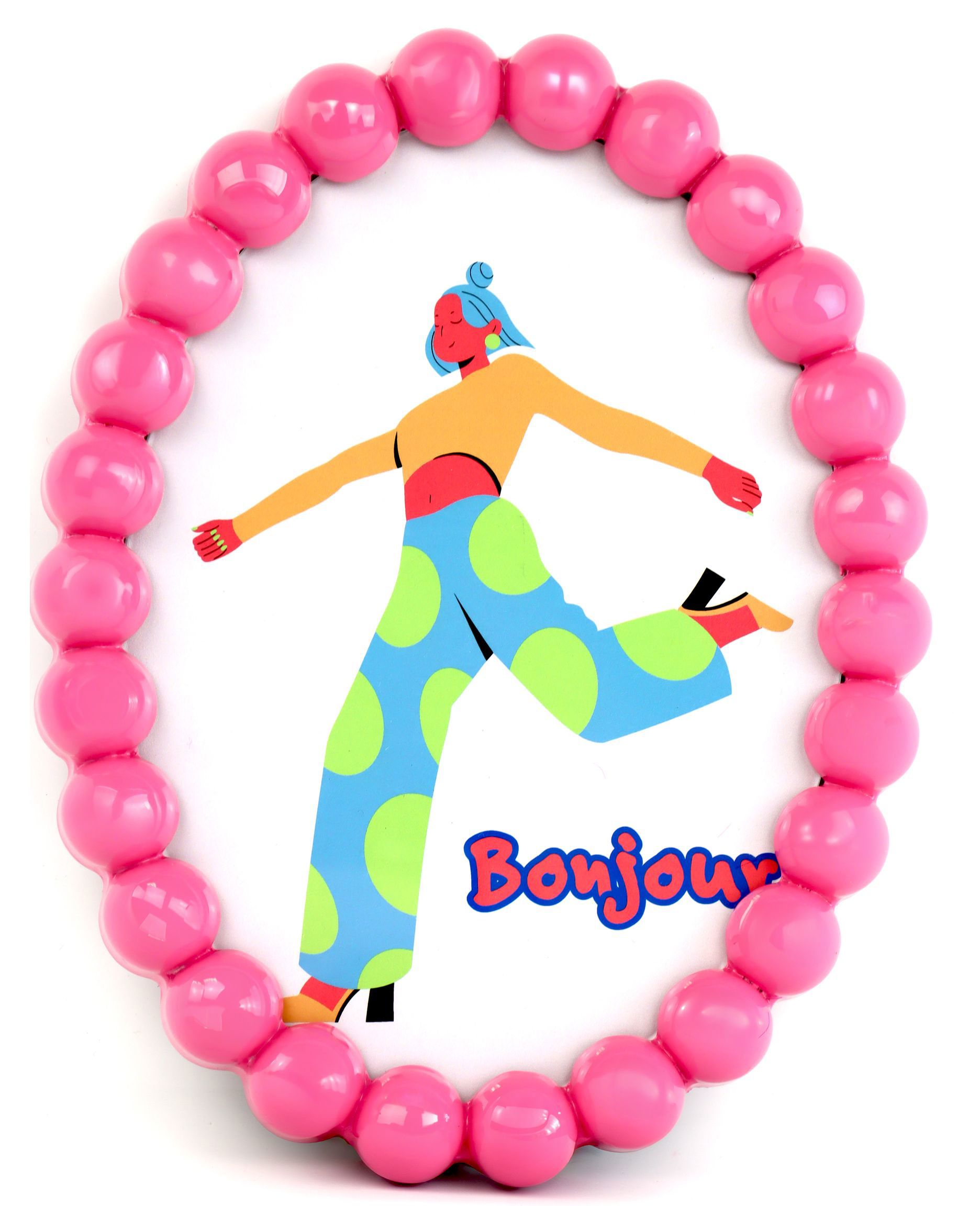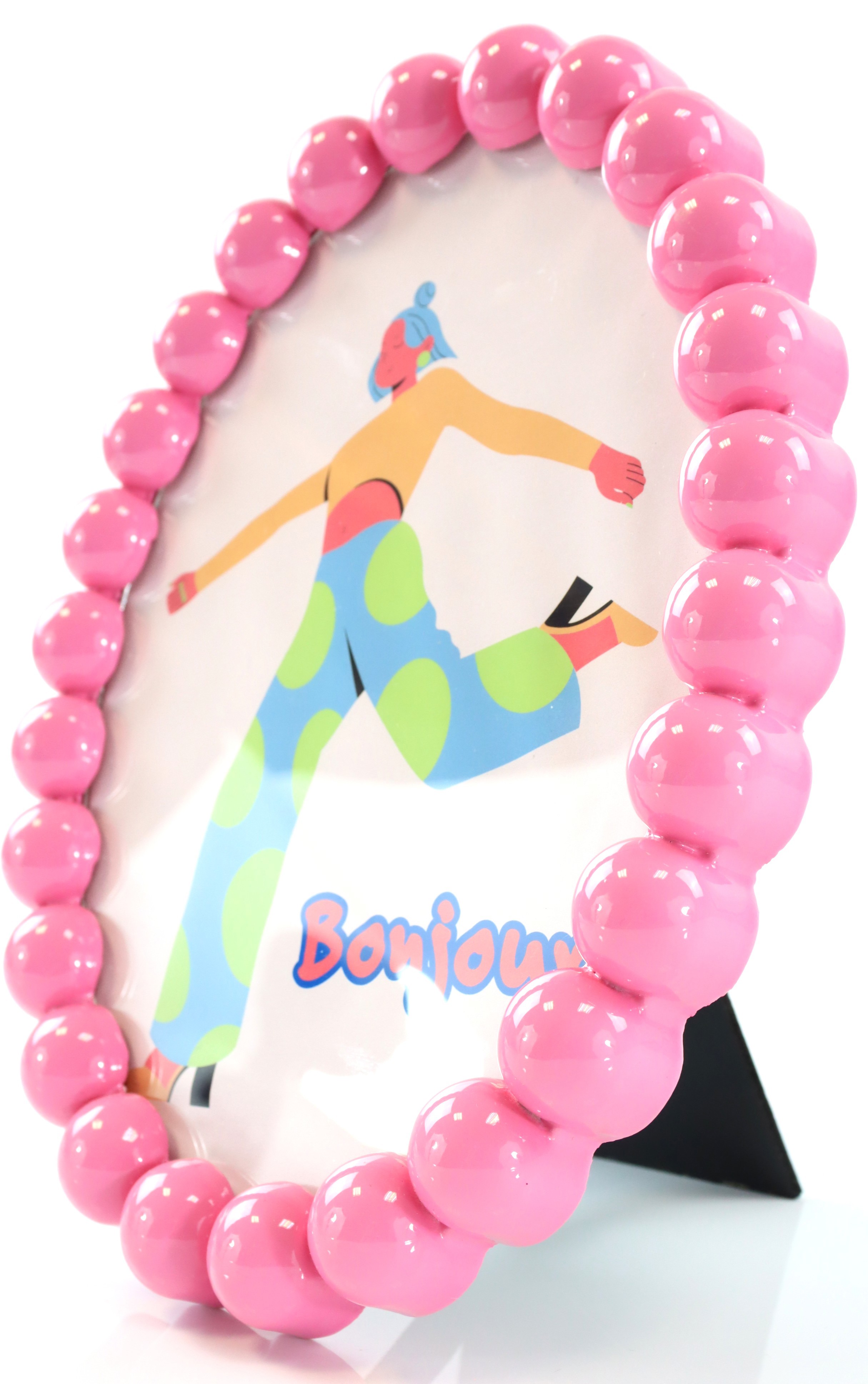 Der Rahmen "BONJOUR" bringt frischen Wind in Ihre Frühjahrs- und Sommerdekoration. Exquisit gestaltet aus rosafarbenen Kugeln aus hochwertigem Kunststoff und Glas, ist dieser Rahmen ein echter Blickfang in jedem Raum. Mit einer Abmessung von circa 21 cm präsentiert er sich in perfekter Größe, um Ihre Lieblingsfotos oder inspirierende Zitate stilvoll in Szene zu setzen. Der feine Glanz der Glas- und Kunststoffkugeln verleiht dem Rahmen eine fröhliche und elegante Note, die perfekt in den Bereich Wohnen und Lifestyle passt.