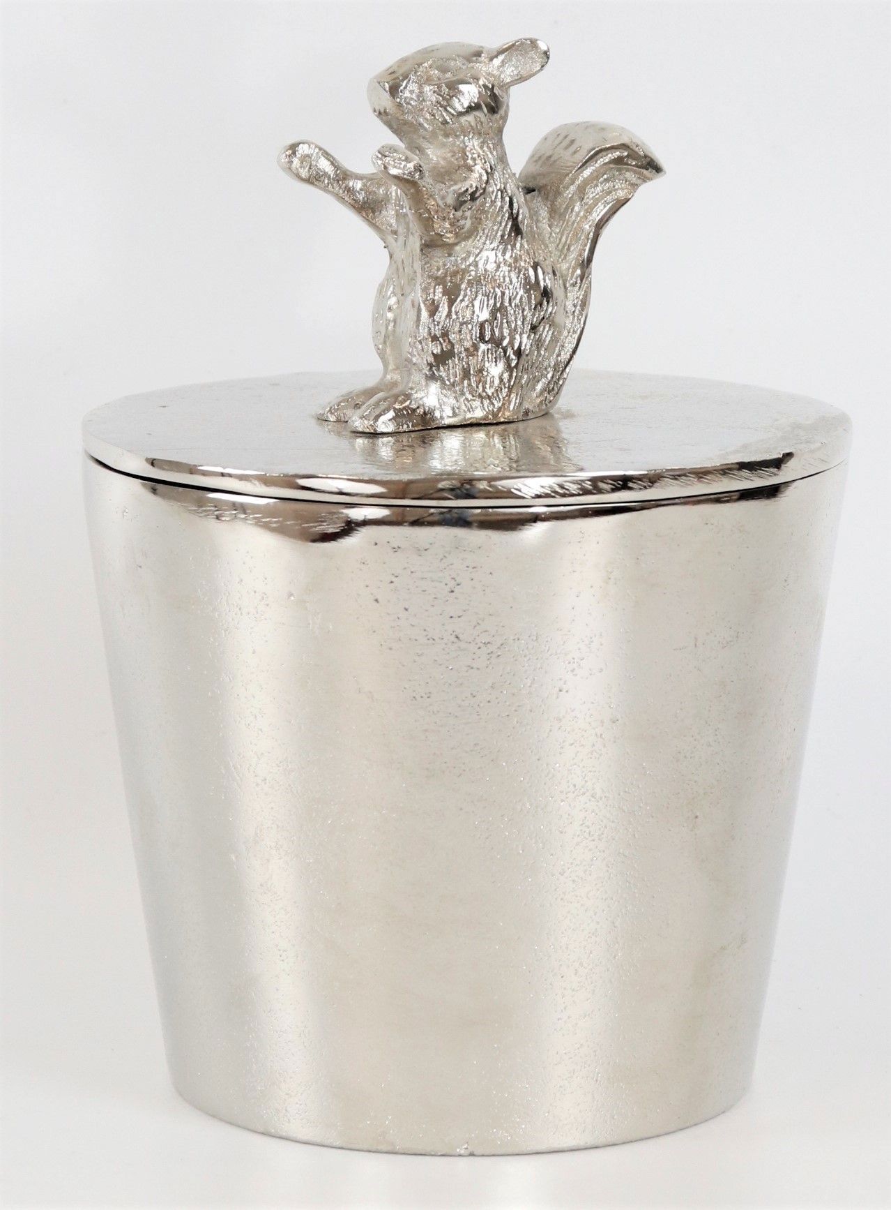 Für den stationären Einzelhandel im Wohnen und Lifestyle bietet die Objektdose "Eichhörnchen" vielfältige Einsatzmöglichkeiten. Sie eigent sich nicht nur als ansprechende Dekoration, sondern auch zur praktischen Aufbewahrung kleiner Gegenstände wie Schmuck, Schlüssel oder Süßigkeiten. Die sorgfältige Verarbeitung aus Aluminium garantiert Langlebigkeit und Widerstandsfähigkeit und macht diese Dose zu einem zeitlosen Begleiter, der Jahr für Jahr Freude bereitet.