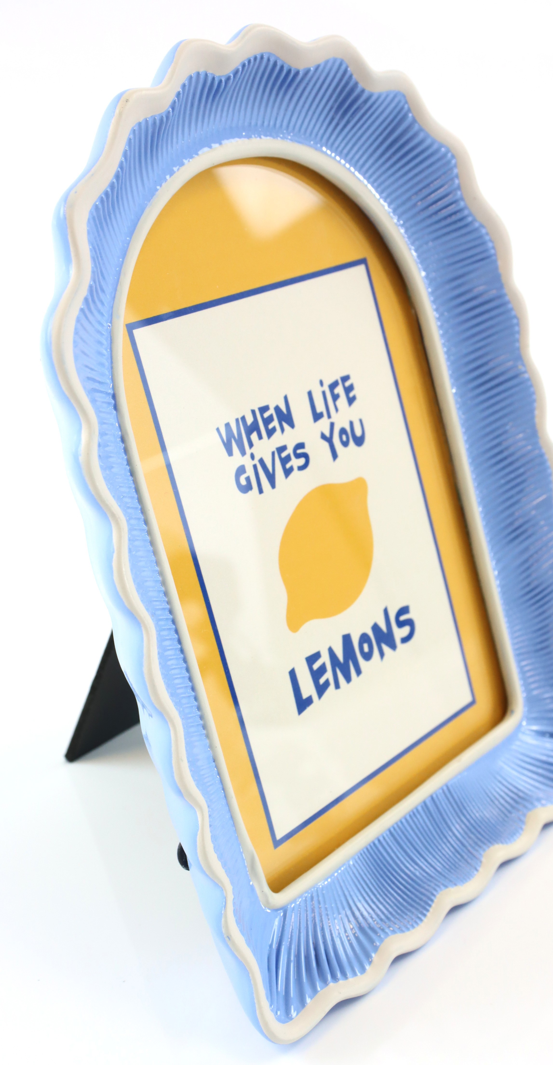 Die Kombination aus lebendigen Farben und dem naturinspirierten Zitronenmotiv macht diesen Rahmen zu einem idealen Geschenkartikel sowie zu einem stilvollen Accessoire für jeden Raum. Präsentieren Sie in Ihrem Geschäft so eine frische Frühlingsbrise, die Ihre Kunden inspirieren wird.