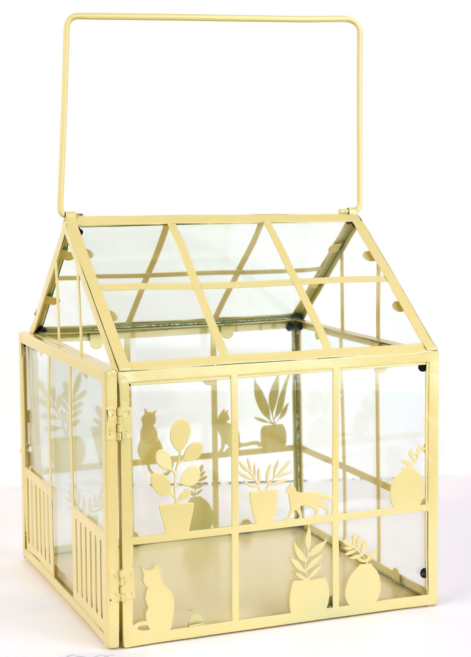 Gefertigt aus robustem Eisen und hochwertigem Glas, bietet dieses Gewächshaus nicht nur Langlebigkeit, sondern auch eine zeitlose Eleganz. Die fröhliche gelbe Farbe verleiht jedem Raum einen lebendigen Akzent und sorgt dafür, dass Ihre Pflanzen in einem farbenfrohen Rahmen perfekt zur Geltung kommen. Ob Sie Kräuter, Sukkulenten oder kleine blühende Pflanzen präsentieren möchten – das "GREENHOUSE LEAVE&LUMEN" bietet den idealen Schutz und fördert gleichzeitig die optimale Wachstumsumgebung.