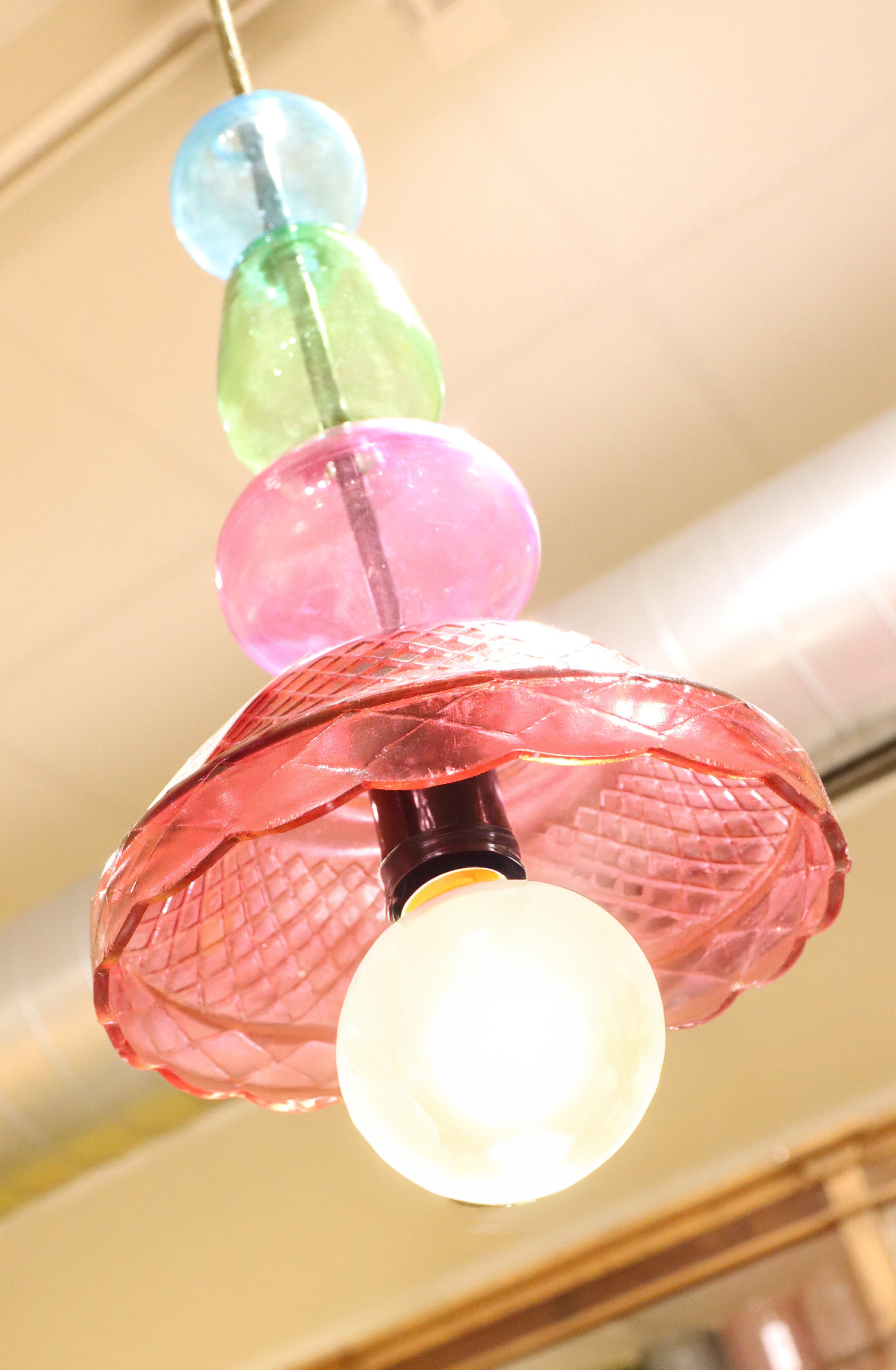 Bringen Sie mit unserer exklusiven Hängelampe "Jeu de Lumière" frischen Wind in die Wohn- und Lifestyle-Bereiche Ihrer Kunden. Diese exquisite Lampe ist nicht nur ein Lichtspender, sondern auch ein echtes Design-Statement, das besonders im Frühjahr und Sommer seine volle Wirkung entfaltet. Die auffällige rote Farbe in Kombination mit bunten Akzenten aus Glas und Metall macht diese Hängelampe zum Highlight in jedem Raum.