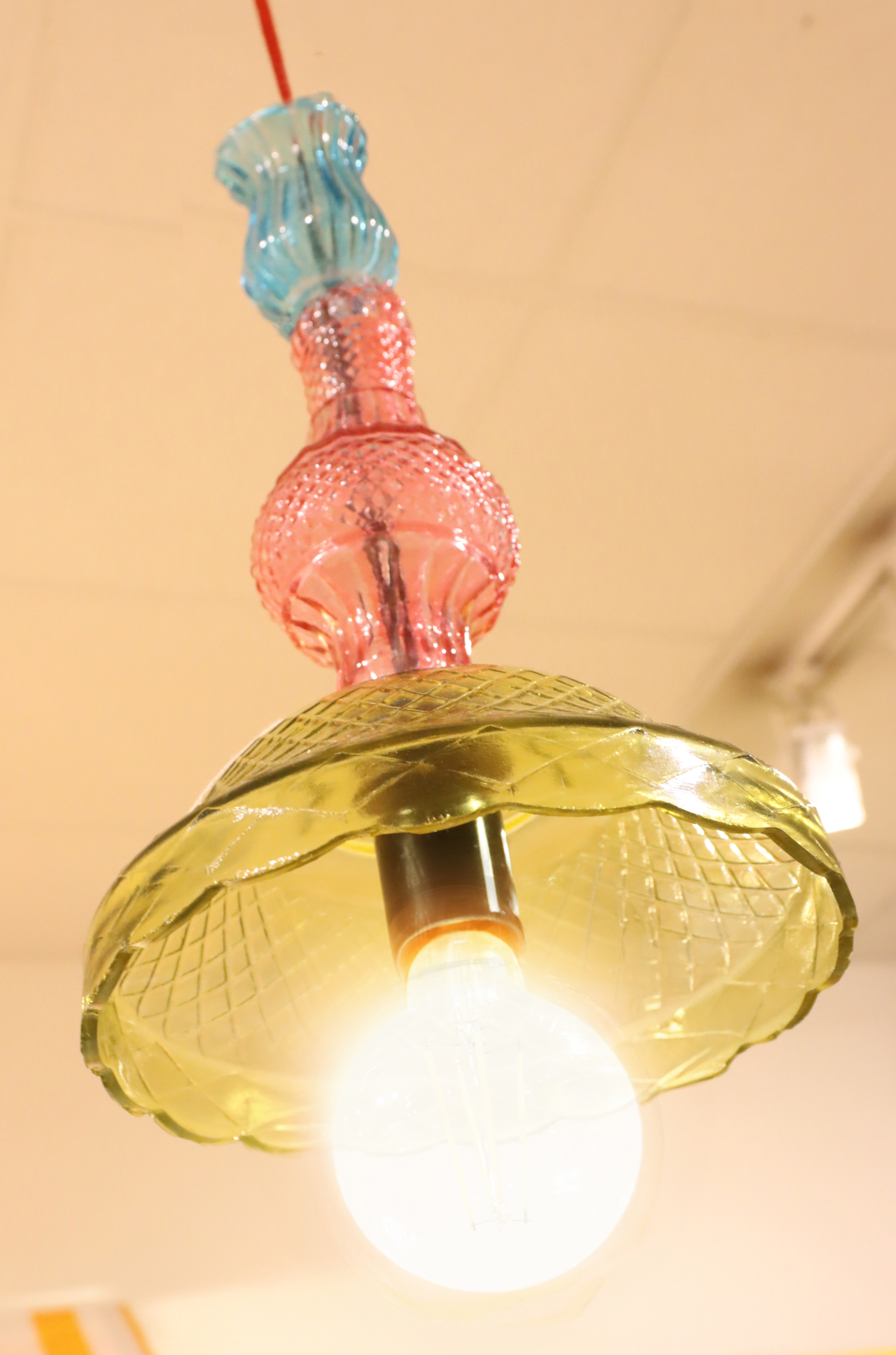 - **Farbiges Design:** Gelber Lampenschirm aus hochwertigem Glas, kombiniert mit einem eleganten Metallgestell.
