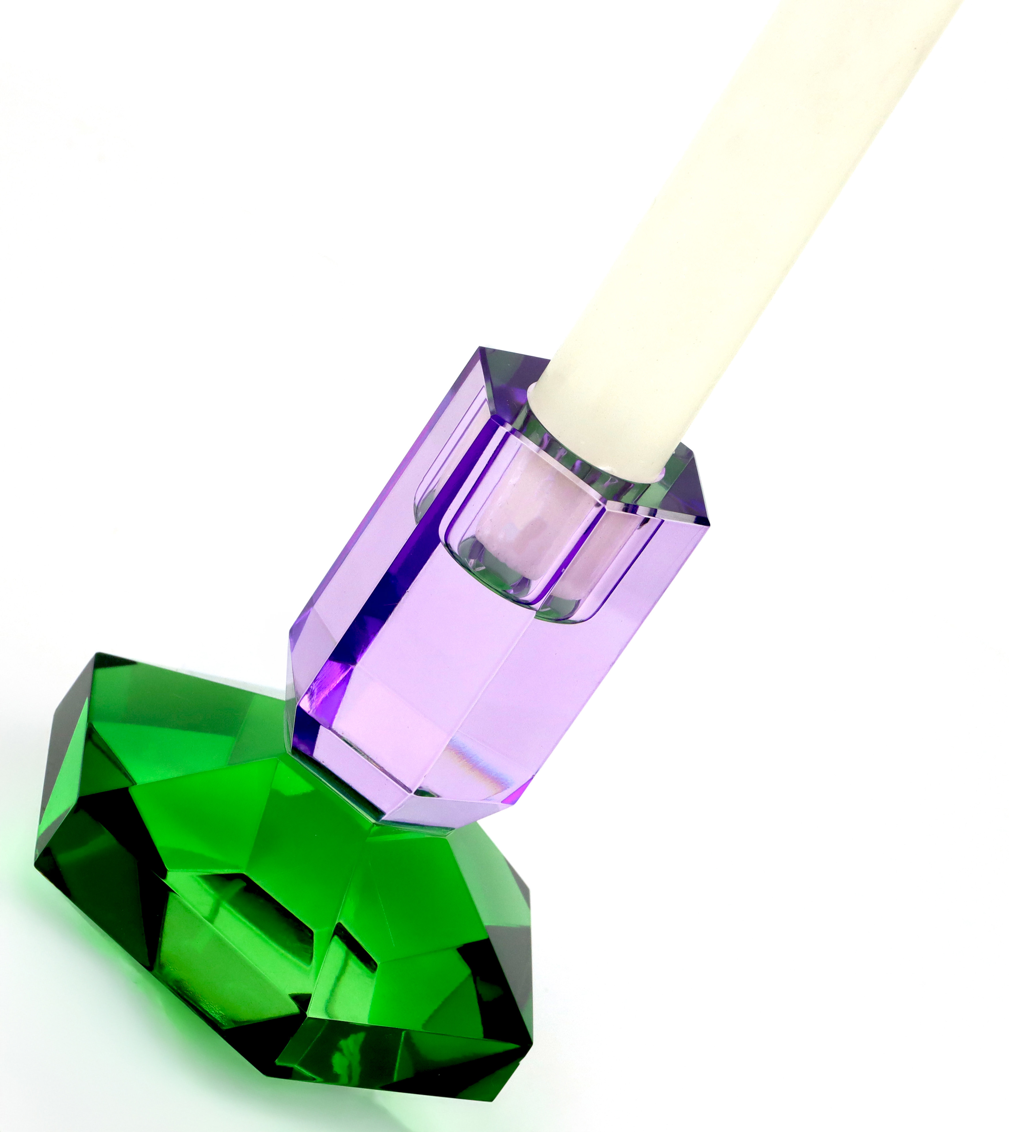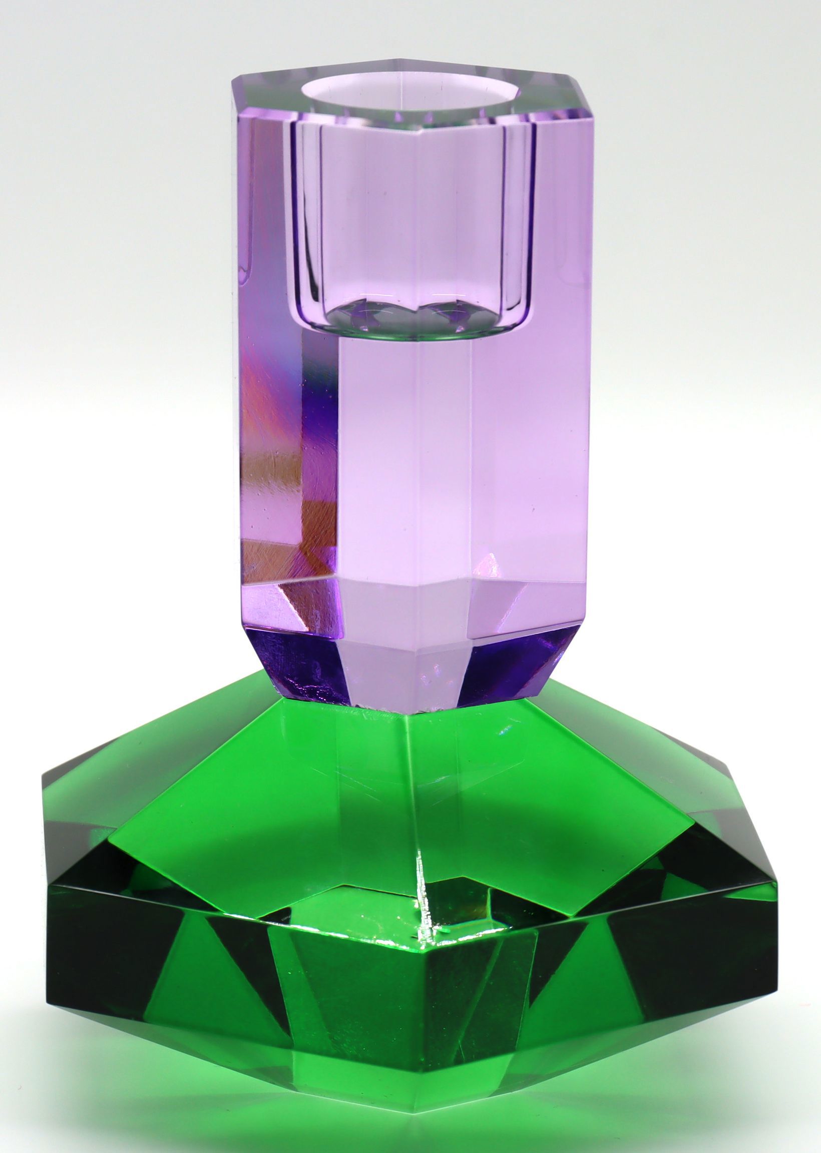 Der Leuchter "Baccarat" - ein Meisterwerk aus Kristallglas - erhebt sich als formvollendete Symbiose aus Kunst und Funktionalität. Dieser exquisite Leuchter in den betörenden Farben Lila und Grün bringt nicht nur Licht, sondern auch Luxus in jeden Wohnraum und wird zweifellos zum eleganten Blickfang in jedem Ambiente. Mit seiner handlichen Größe von etwa 11,5 cm fügt sich der Leuchter nahtlos in jedes Einrichtungskonzept ein, sei es klassisch, modern oder eklektisch.