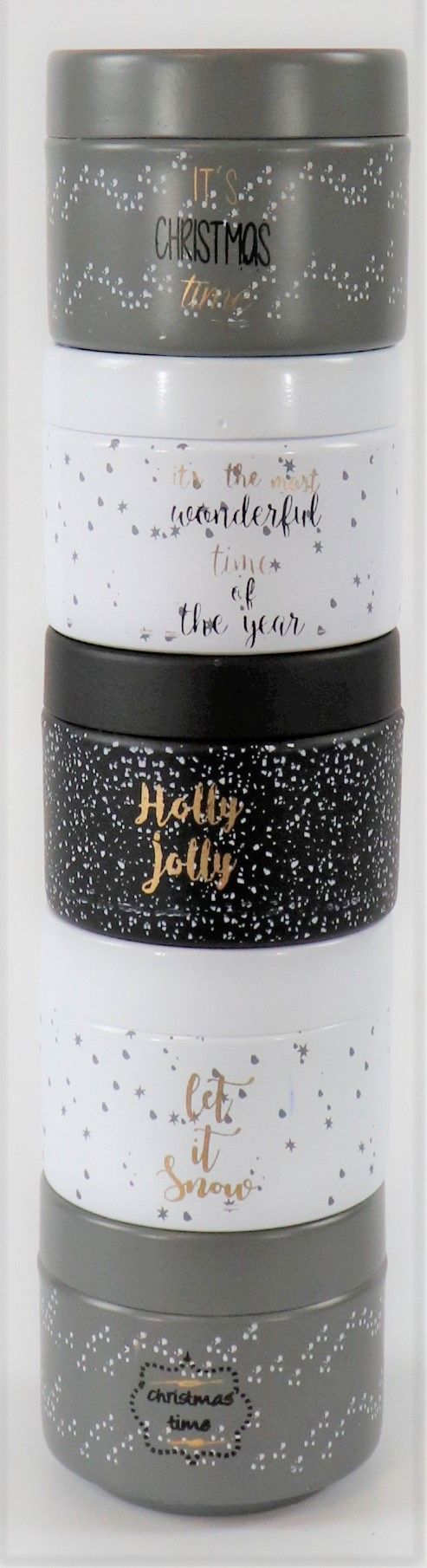 DE**Produktbeschreibung: DOSENTOWER "HOLLY JOLLY" S/5 aus Metall – Der perfekte Weihnachtsschmuck für Ihr Zuhause**