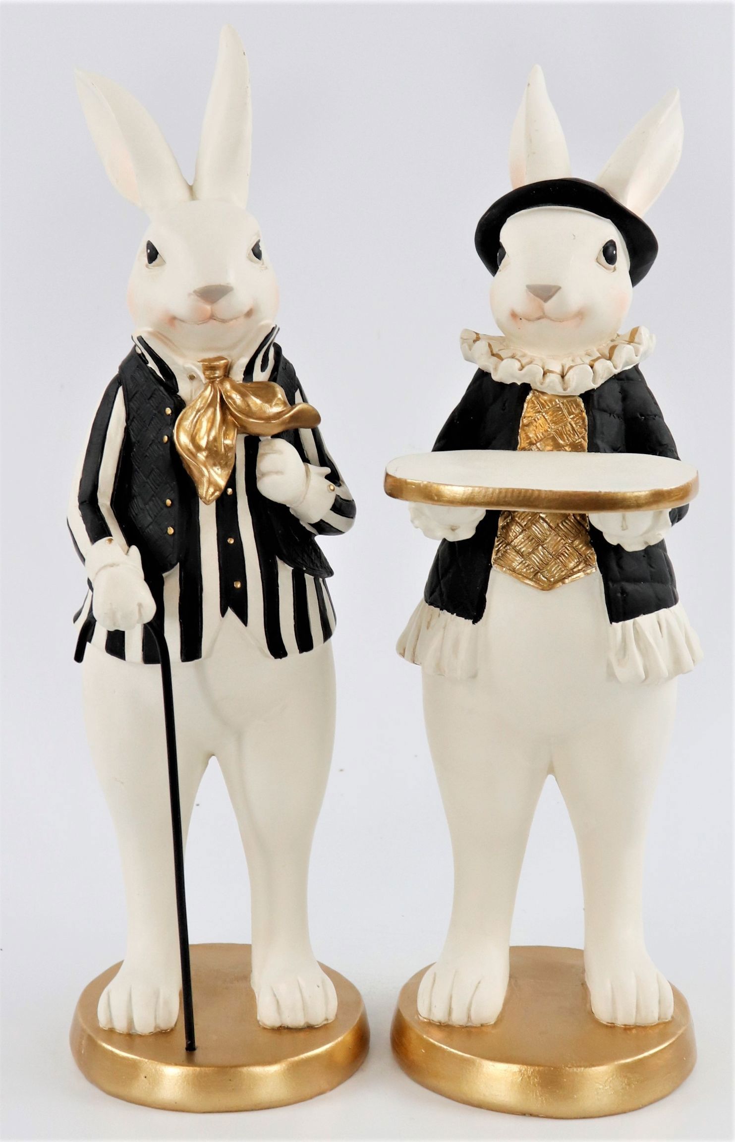 Ob als klassisch-dezente Ergänzung zu einer bestehenden Dekoration oder als zentraler Blickfang, das Hasenpaar "Lordly" fügt sich harmonisch in jede Umgebung ein. Die edle Erscheinung der beiden Hasen im vornehmen, antiquierten Stil fügt sich hervorragend in stilvolle und geschmackvolle Arrangements ein, die Ihren Kunden lange in Erinnerung bleiben werden.