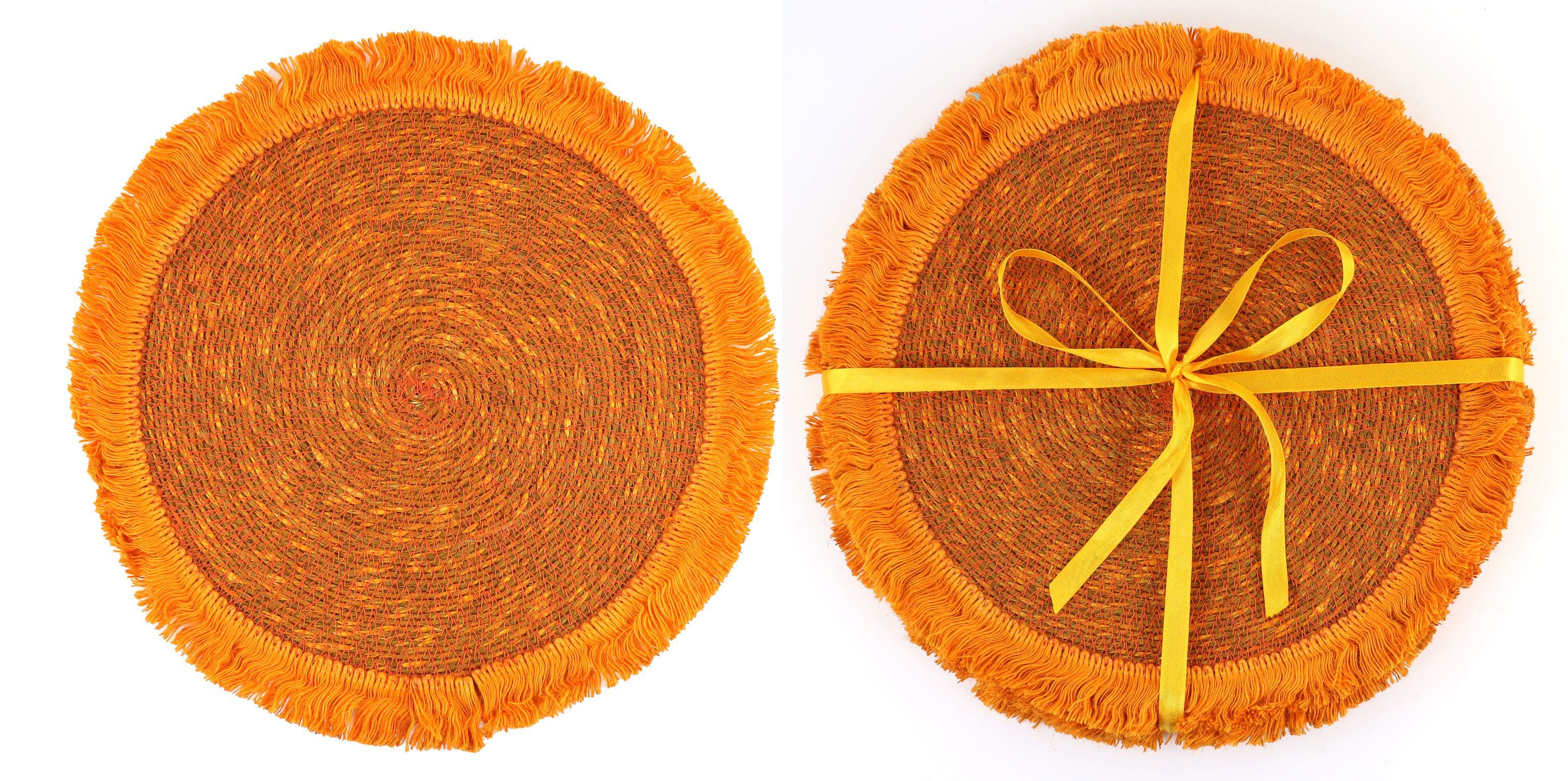 Verleihen Sie Ihrem Verkaufsraum ein sommerliches Flair mit unseren exklusiven PLATZSETS "PUEBLO" S/4. Diese handgefertigten, vierteiligen Platzsets aus hochwertigem Seegras bringen Farbe und Struktur auf jeden Tisch. Mit einem Durchmesser von 36 cm sind sie perfekt dimensioniert, um sowohl größere als auch kleinere Teller stilvoll zu präsentieren. Der warme Orangeton passt perfekt zur Frühjahr/Sommer-Saison und fügt Ihrem Sortiment einen frischen, naturinspirierten Touch hinzu.