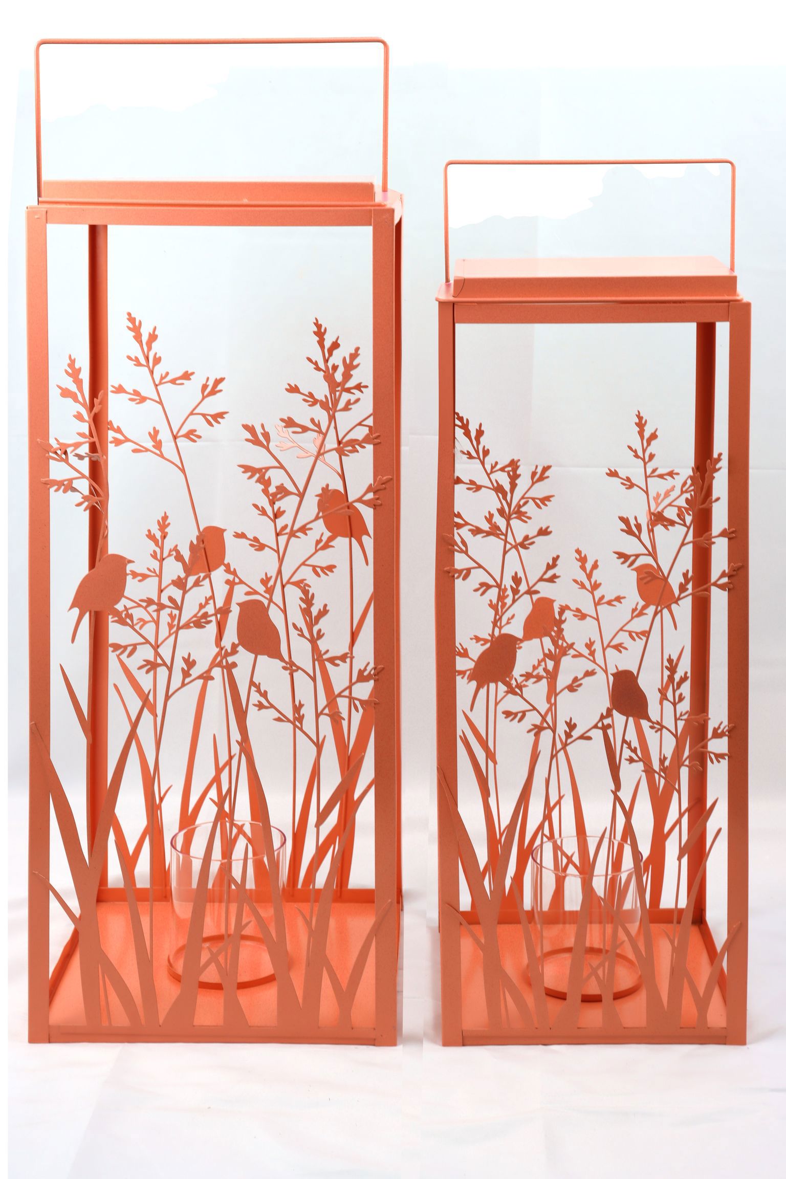 - Robustes Laternen-Set aus Eisen und Glas im modernen Frühlings-/Sommer-Design.