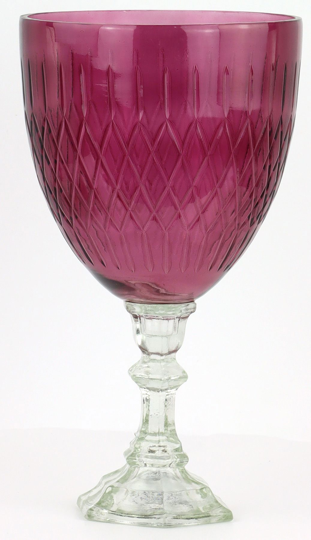 - Bordeauxfarbener Glaspokal "PRISMARA" mit einer Höhe von ca. 32,5 cm
