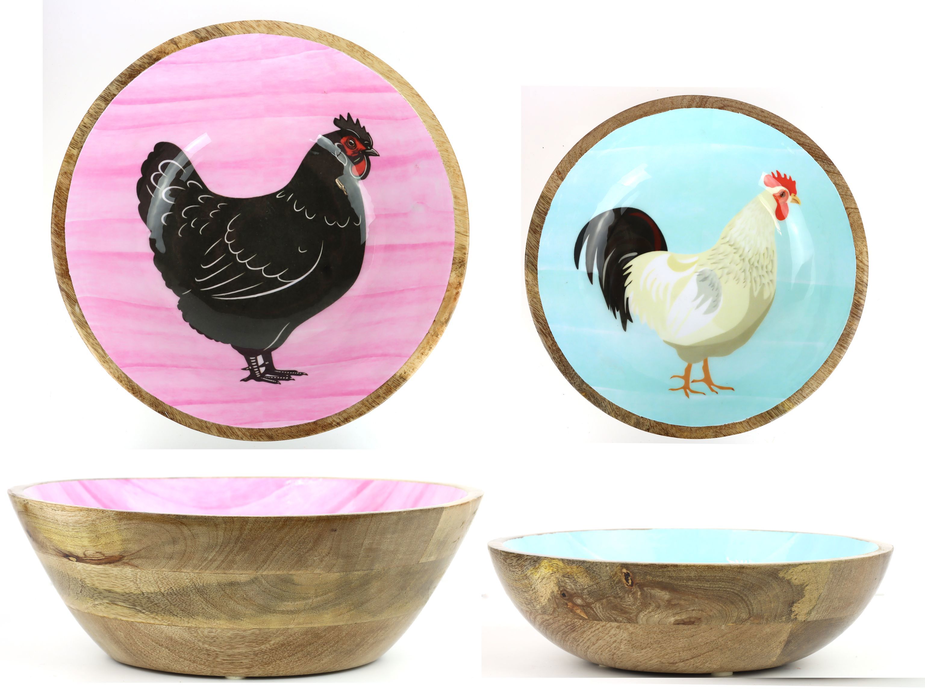 Warum ist unser "KIKERIKI" Schalenset so besonders? Mangoholz ist bekannt für seine Nachhaltigkeit und Ästhetik. Es ist ein robustes Material, das nicht nur umweltfreundlich, sondern auch äußerst langlebig ist. Die warmen Holztöne lassen sich nahtlos in verschiedene Wohnstile integrieren und sind eine perfekte Ergänzung für den modernen, rustikalen oder auch klassischen Einrichtungsstil. Optimal für den stationären Einzelhandel, stellen sie eine attraktive Möglichkeit dar, Kunden zu beeindrucken und Trendartikel zur Saison anzubieten.