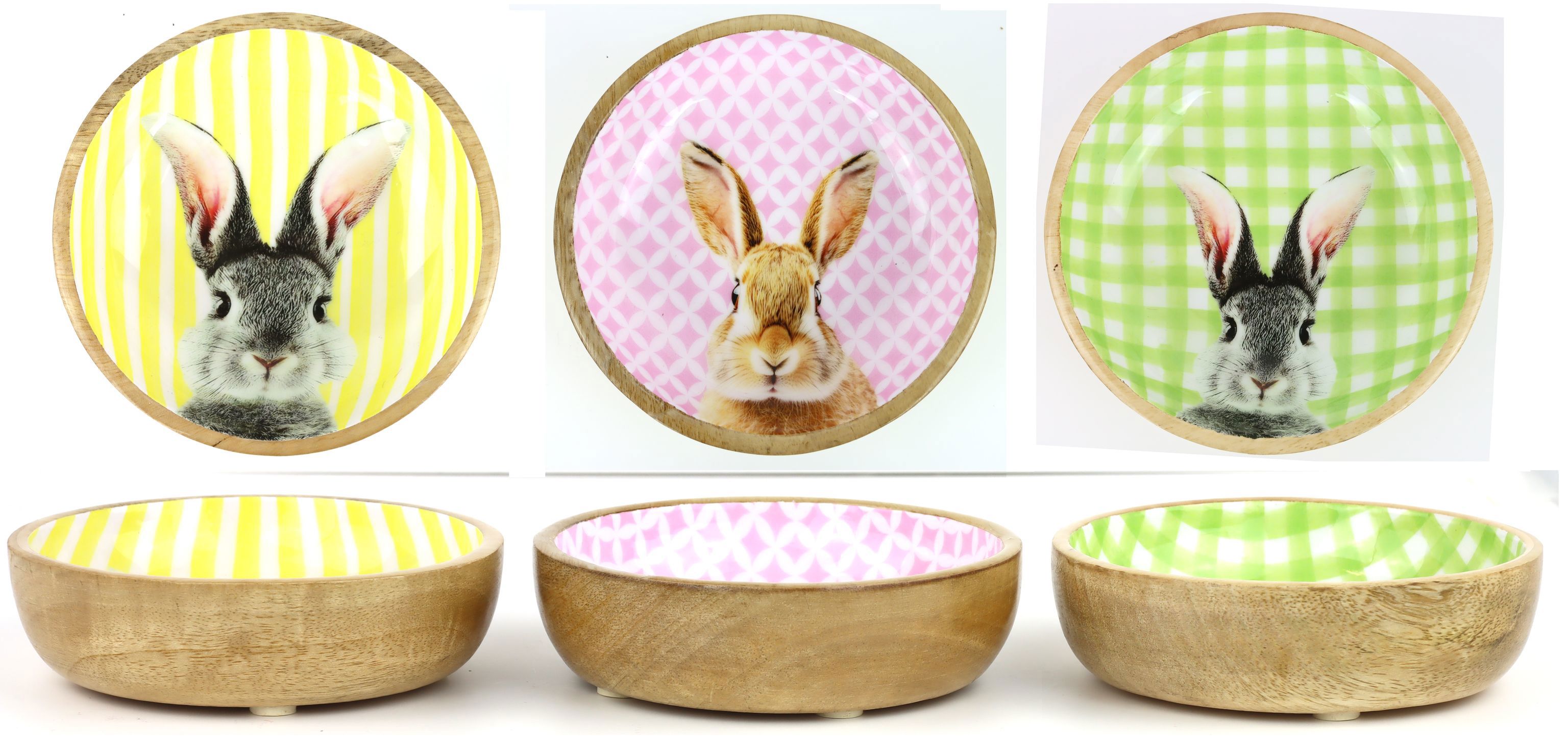 Entdecken Sie unser bezauberndes Schalenset "Bunny Bliss" – ein perfekt abgestimmtes Trio, das Ihrem Osterdekor eine charmante Note verleiht. Speziell für den stationären Einzelhandel im Bereich Wohnen und Lifestyle entwickelt, heben sich diese Schalen durch ihr detailreiches Design und die Verwendung hochwertiger Materialien hervor. Jede der drei Schalen wurde sorgfältig aus nachhaltigem Mangoholz gefertigt, das nicht nur für seine Langlebigkeit, sondern auch für seine einzigartige, natürliche Maserung geschätzt wird. Mit einem Durchmesser von jeweils etwa 14 cm bieten diese Schalen ausreichend Platz für Ostereier, Süßigkeiten oder kleine Dekorationen und sind somit ideal für die Osterzeit.