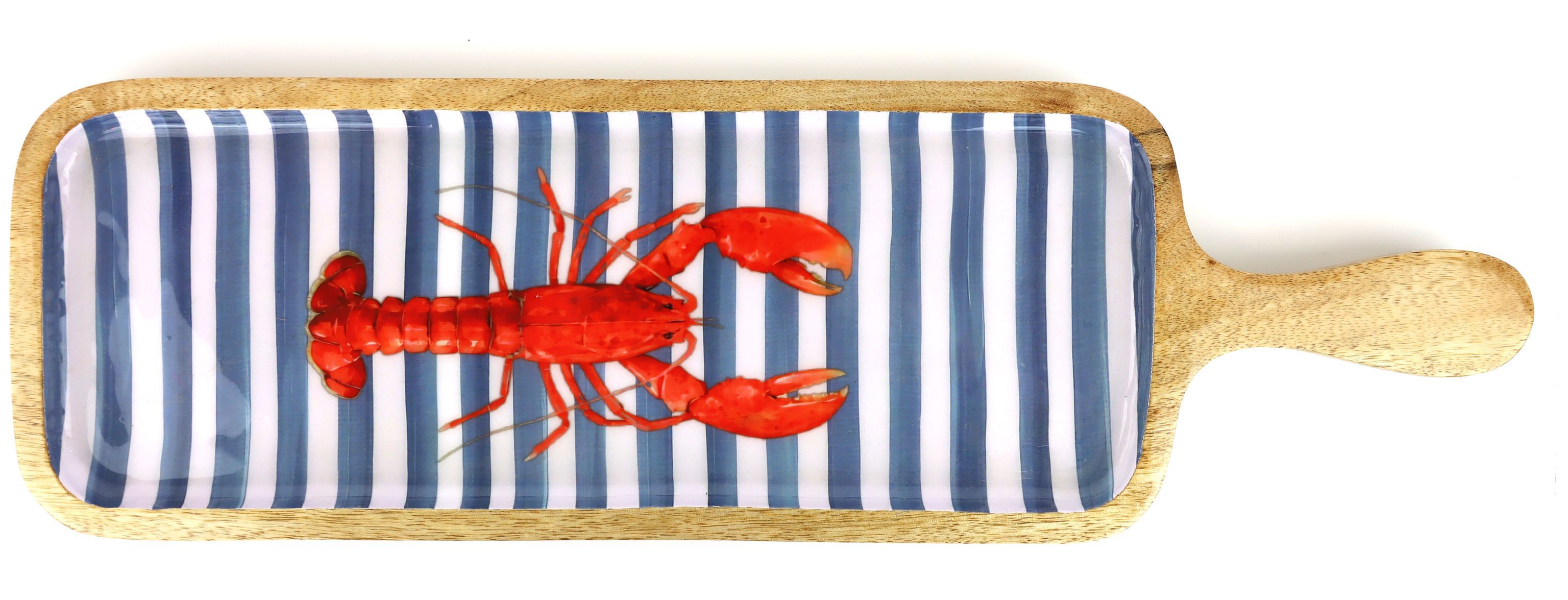 Entdecken Sie das exquisite Vorlegebrett "Lobster Lines" – ein Muss für jeden modernen stationären Einzelhändler im Wohn- und Lifestyle-Segment. Unser hochwertiges Vorlegebrett ist nicht nur ein praktisches Küchenaccessoire, sondern auch ein stilvolles Dekorationselement, das Ihren Kunden einen Hauch von Frische und maritimem Flair vermittelt. Die attraktive blau gestreifte Oberfläche gepaart mit dem natürlichen Charme des Mangoholzes macht es zu einem Highlight in jeder Küche oder Esszimmer.