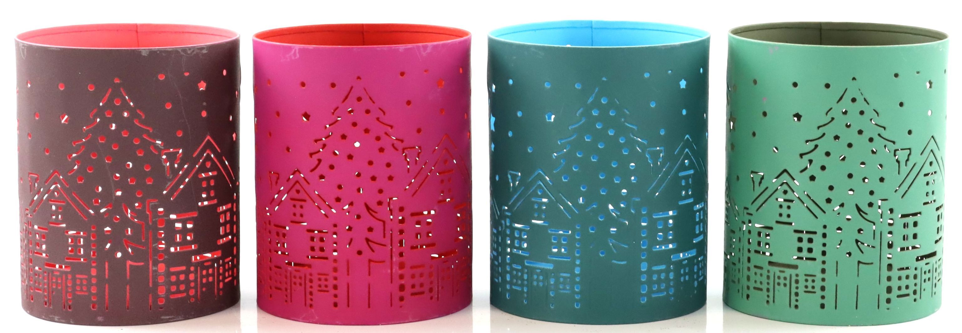 Das 4-teilige Tischlichterset besteht aus detailreich gestalteten Stadtmotiven in harmonischen Rosa- und Blautönen, die jedem Raum eine warme und einladende Atmosphäre verleihen. Hergestellt aus hochwertigem Eisen, sind diese Tischlichter nicht nur robust und langlebig, sondern auch optisch ansprechend. Mit einer Höhe von ca. 12,5 cm setzen sie subtile, aber wirkungsvolle Akzente auf jedem Tisch oder in jedem Raum und sind somit perfekt für die saisonale Dekoration geeignet.