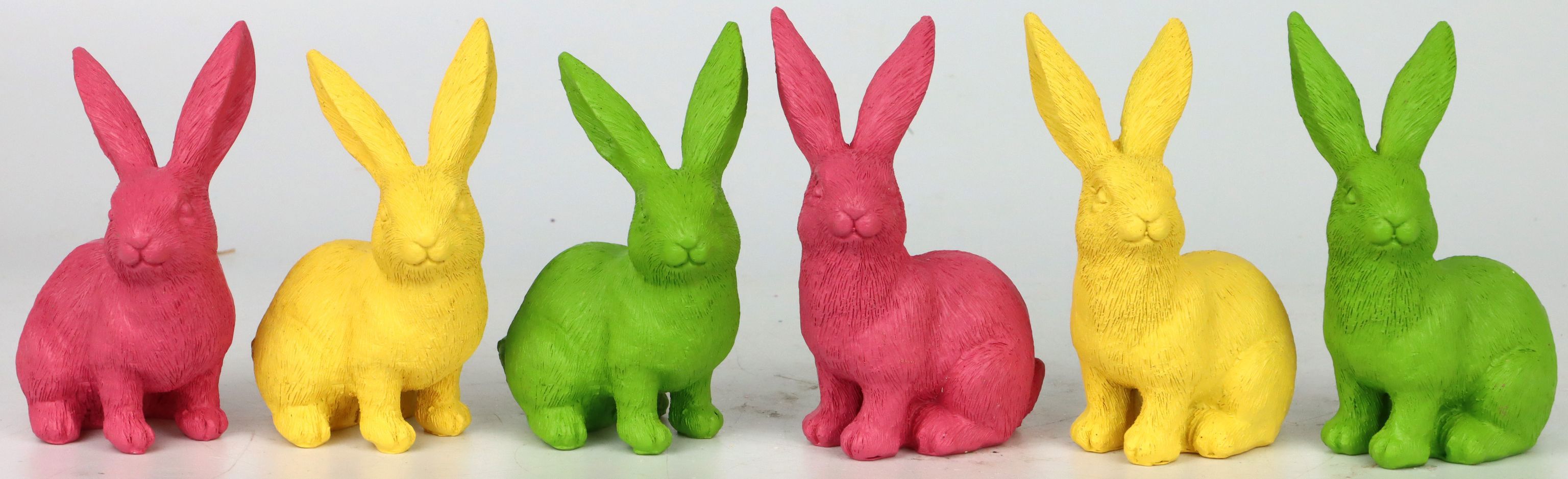 Die "Colori"-Hasenbande besteht aus sorgfältig gefertigten Figuren aus hochwertigem Polyresin, die nicht nur durch ihre leuchtenden Farben, sondern auch durch ihre liebevoll gestalteten Details und den modernen Look überzeugen. Jede der süßen Hasenfiguren ist ca. 11 cm hoch, was sie zu idealen Accessoires für Kommoden, Tischdekorationen oder Fensterbänke macht. Ihre ausdrucksstarken Farben machen sie ideal für eine breite Palette von Dekorationsstilen von verspielt bis elegant.