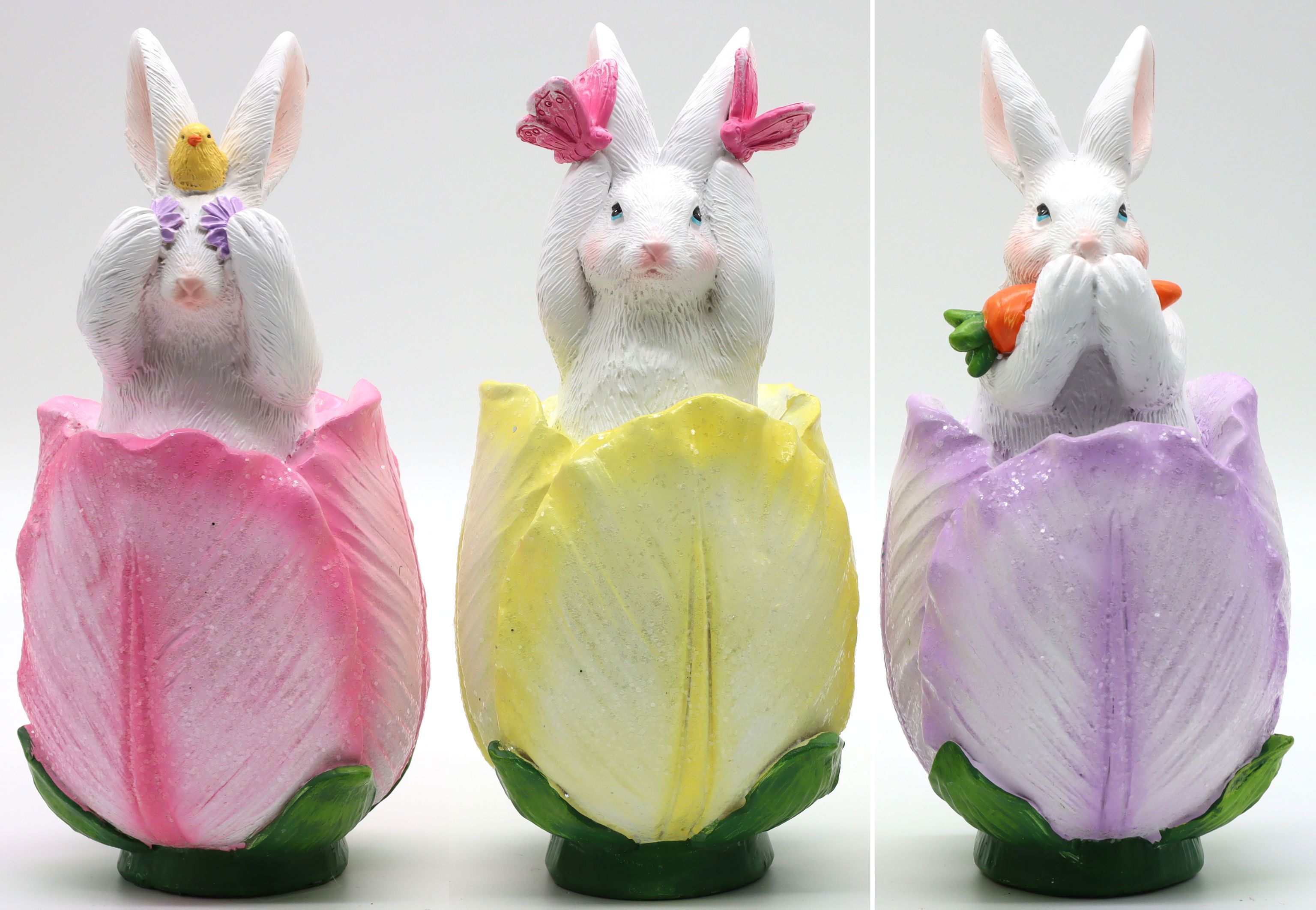 Die Osterzeit steht bevor, und kein Zuhause sollte ohne die zauberhaften Blumenhasen "Bellebunny" aus unserem Sortiment bleiben. Das Set aus drei detailverliebten Hasen, eingebettet in zierliche Blüten, ist die perfekte Ergänzung für jede Frühlings- und Osterdekoration. Diese Dekorationsfiguren, aus hochwertigem Polyresin gefertigt, bestechen durch ihre sorgfältige Verarbeitung und sind der Inbegriff für stilvolle Osterdeko. Mit einer Größe von etwa 11,5 cm sind sie ideal, um als Hingucker auf Tischen, Regalen oder Fensterbänken zu dienen.
