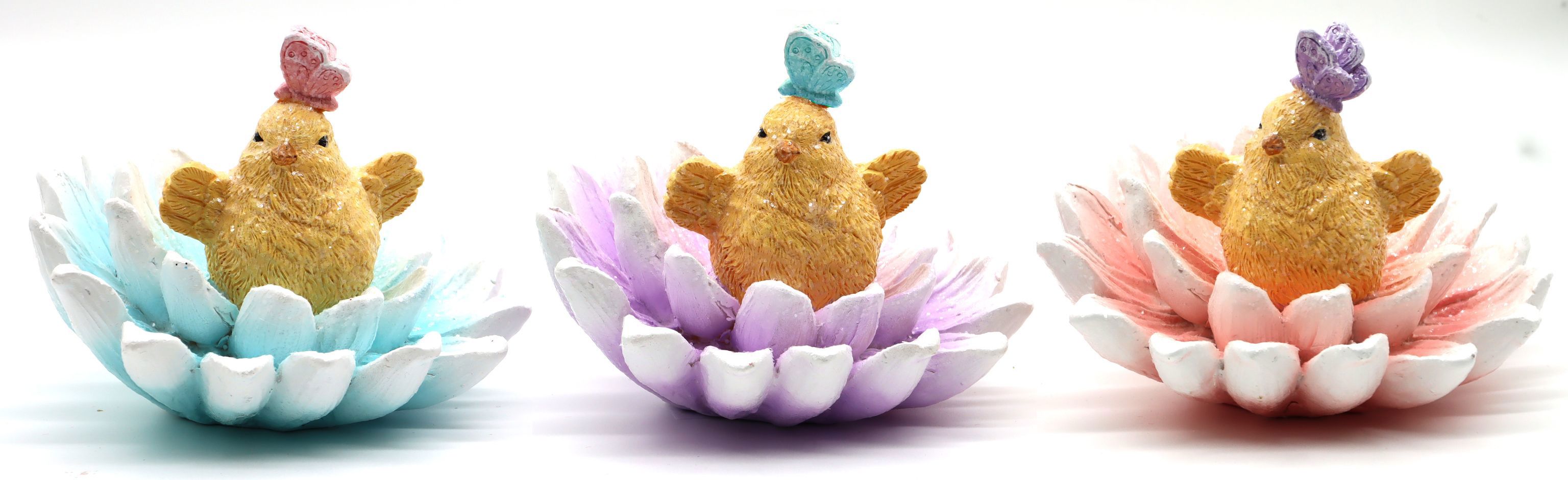 Bringen Sie frischen Wind in Ihr saisonales Deko-Angebot mit unserem einzigartigen "FLOATING CHICKEN 'PETITE PEEP' S/3" Set. Perfekt für die Osterzeit, besticht dieses charmante 3-teilige Dekorationsset durch seine detailverliebte Fertigung und außergewöhnliche Optik. Die aus robustem Polyresin gefertigten Hühner sind jeweils etwa 12 cm groß und beeindrucken mit einem Design, das sie auf einer kleinen Blume posierend zeigt. Diese stilvolle Osterdeko wird in jedem Wohn- und Lifestyle-Bereich zu einem besonderen Hingucker.